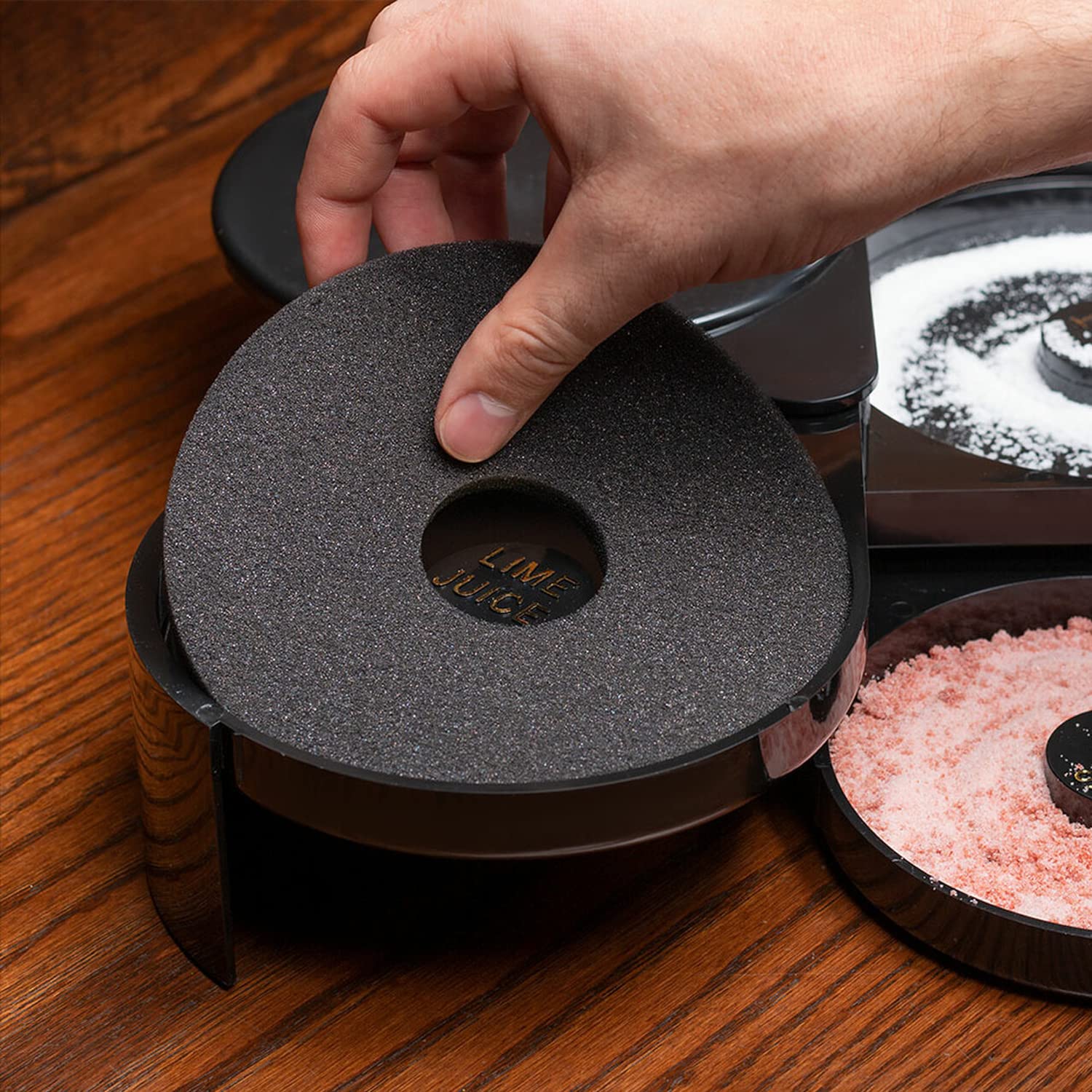 - đăProfessional Bar QualityăïŒThis glass rimmer contains a tray for lime, a tray for salt and a tray for sugar. Ideal for home or professional bars, hotels, restaurants, resorts, etc. And black color matches any decorations.