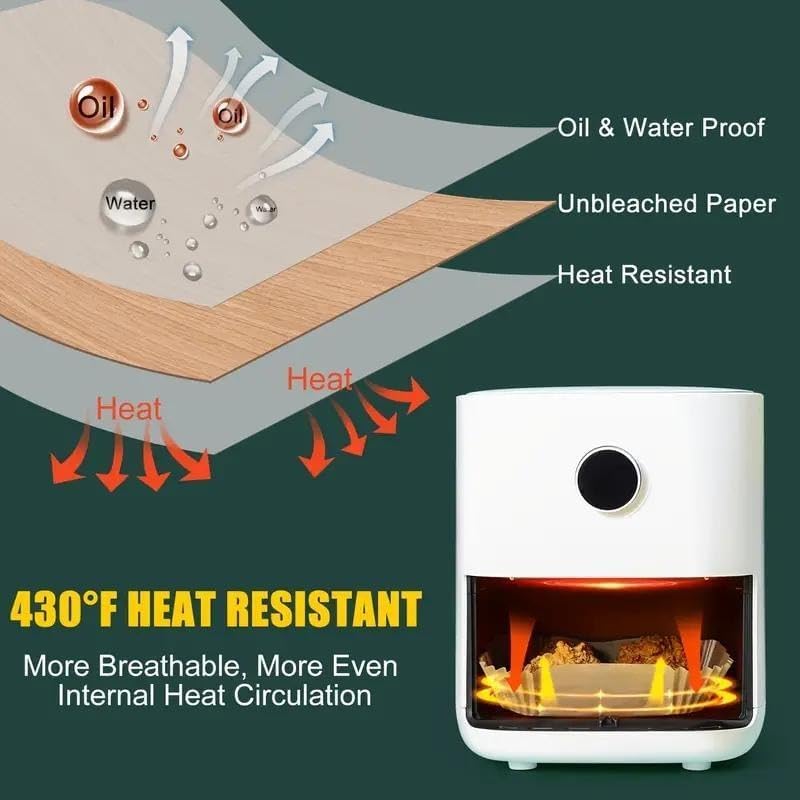 100pcs Disposable Air Fryer Liners, Non - stick Oil - proof Waterproof Parchment Paper, Multi - purpose for Baking & Air Fryer(Super good qualiey)
