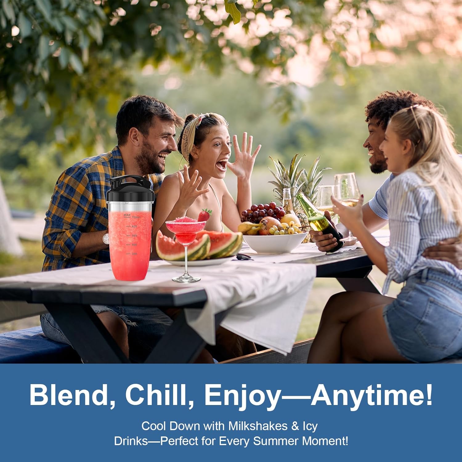 - 3 Versatile Cup Sizes: Your personal blender includes 3 cups in different sizes (23 oz, 32 oz, and 37 oz full capacity) to suit a variety of blending needs. Each cup features clear measurement lines, allowing you to easily track the amount of ingredients added. Durable and drop-resistant, these cups come with 2 flat lids and 1 to-go lid for easy portability, making them perfect for taking your beverages on the go