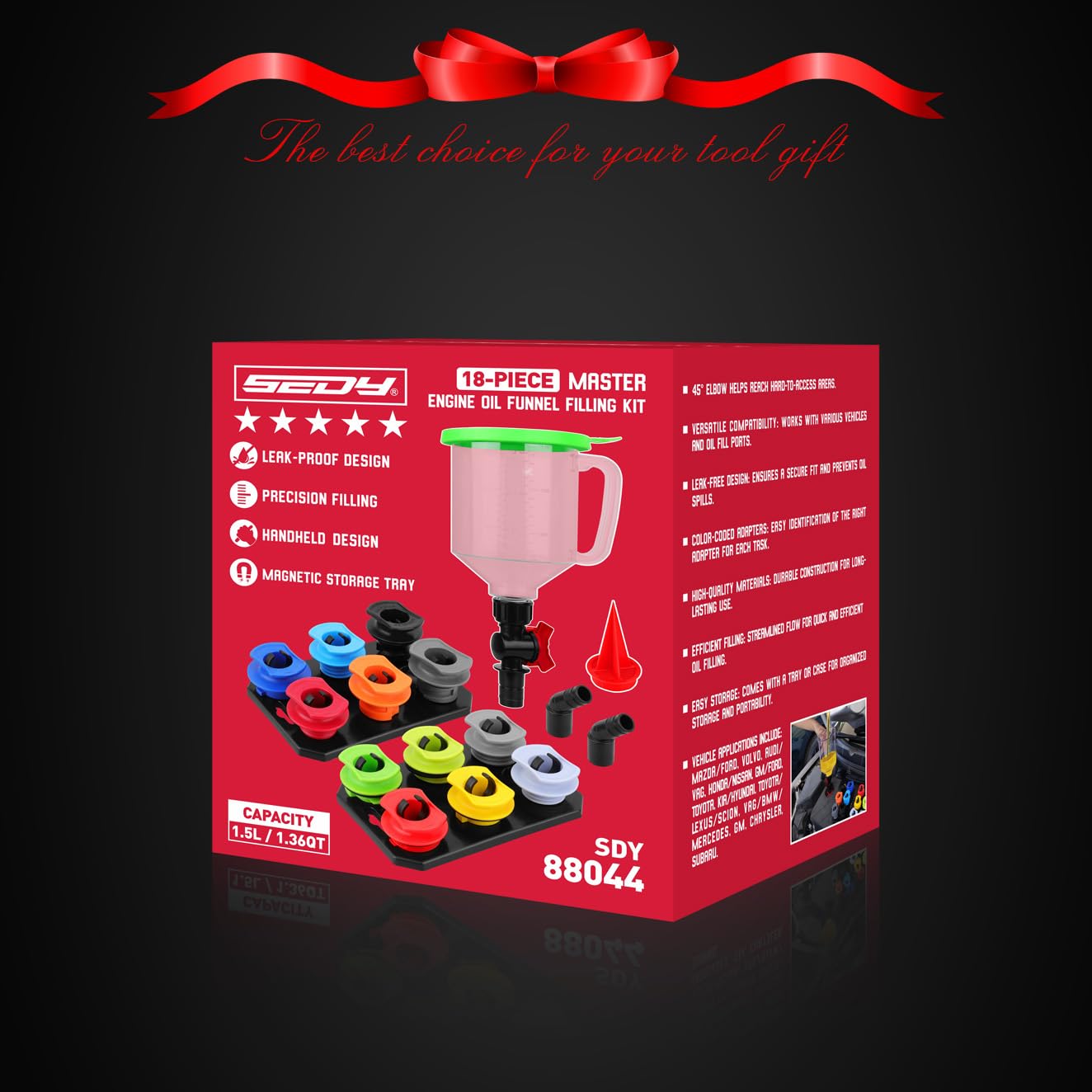 - HANDS-FREE OPERATION - Enjoy effortless oil changes with this 18-piece set, designed to allow you to pour oil without needing to hold the funnel, thanks to the secure seal and easy setup.