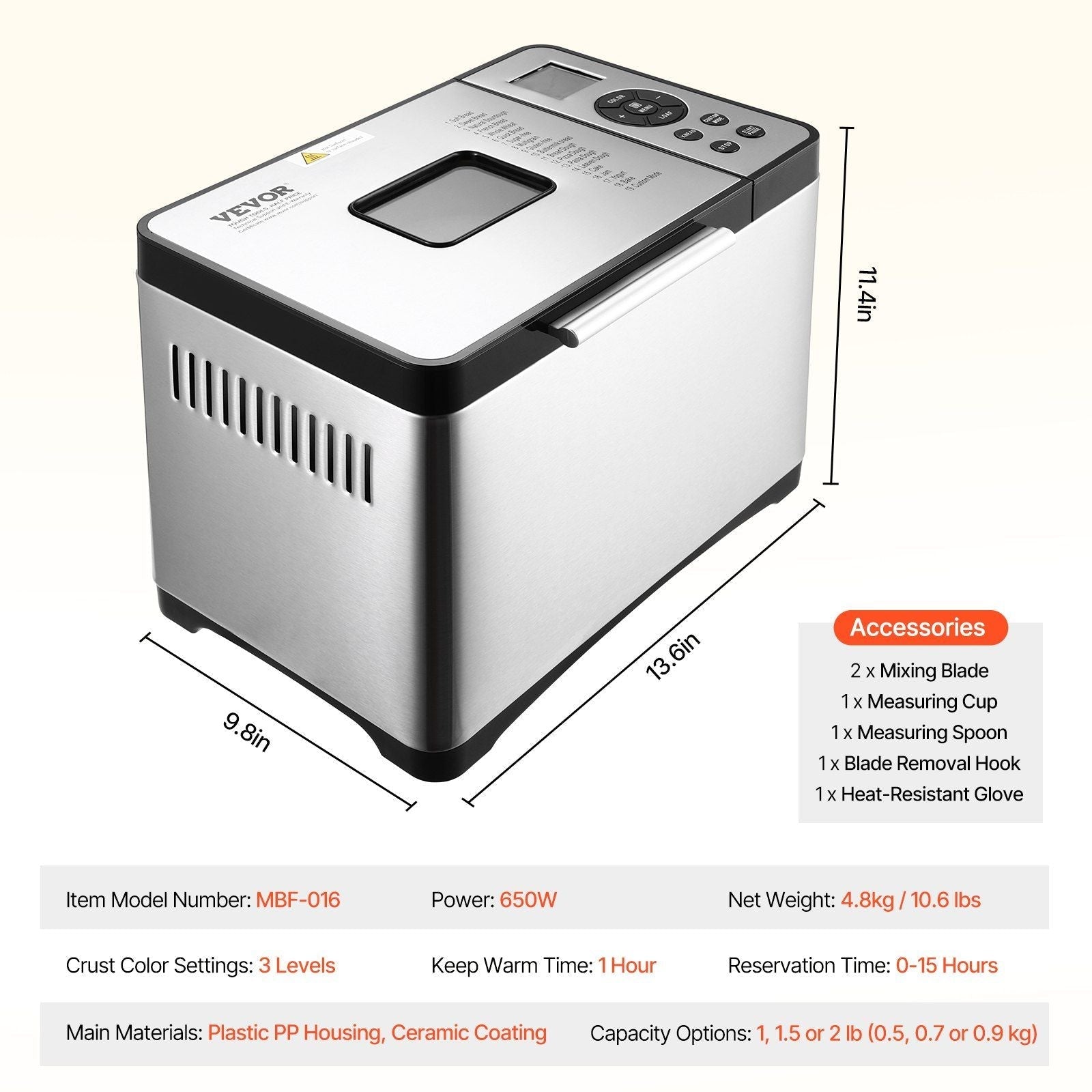 2LB 19-in-1 Bread Maker Automatic Compact Dough Machine Nonstick 3 Crust Colors