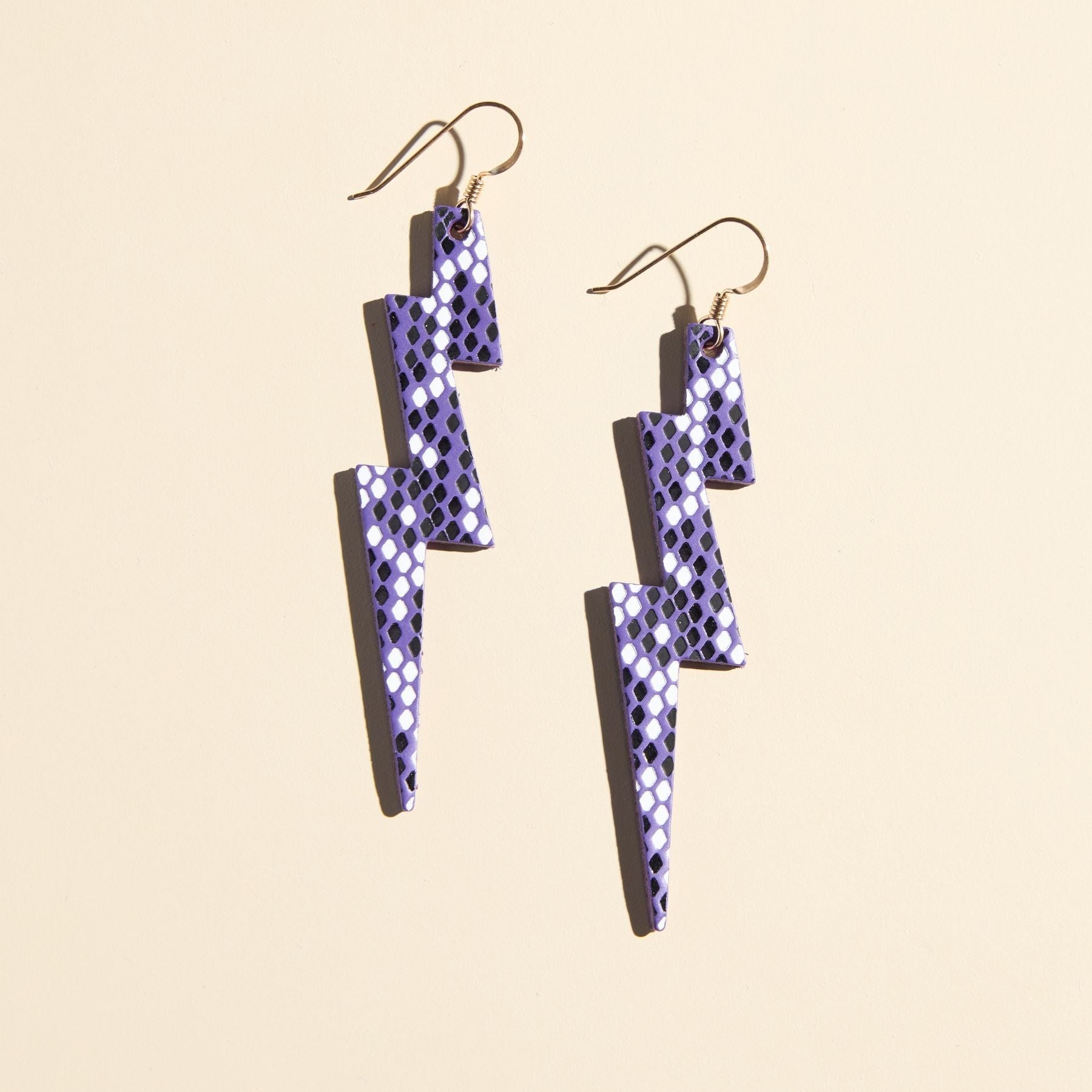 Get Thunderstruck with our Baltimore Lightning Bolts - our iconic bolt silhouette that features our smooth purple leather with hand-stamped black and white foil in a snake-skin pattern.