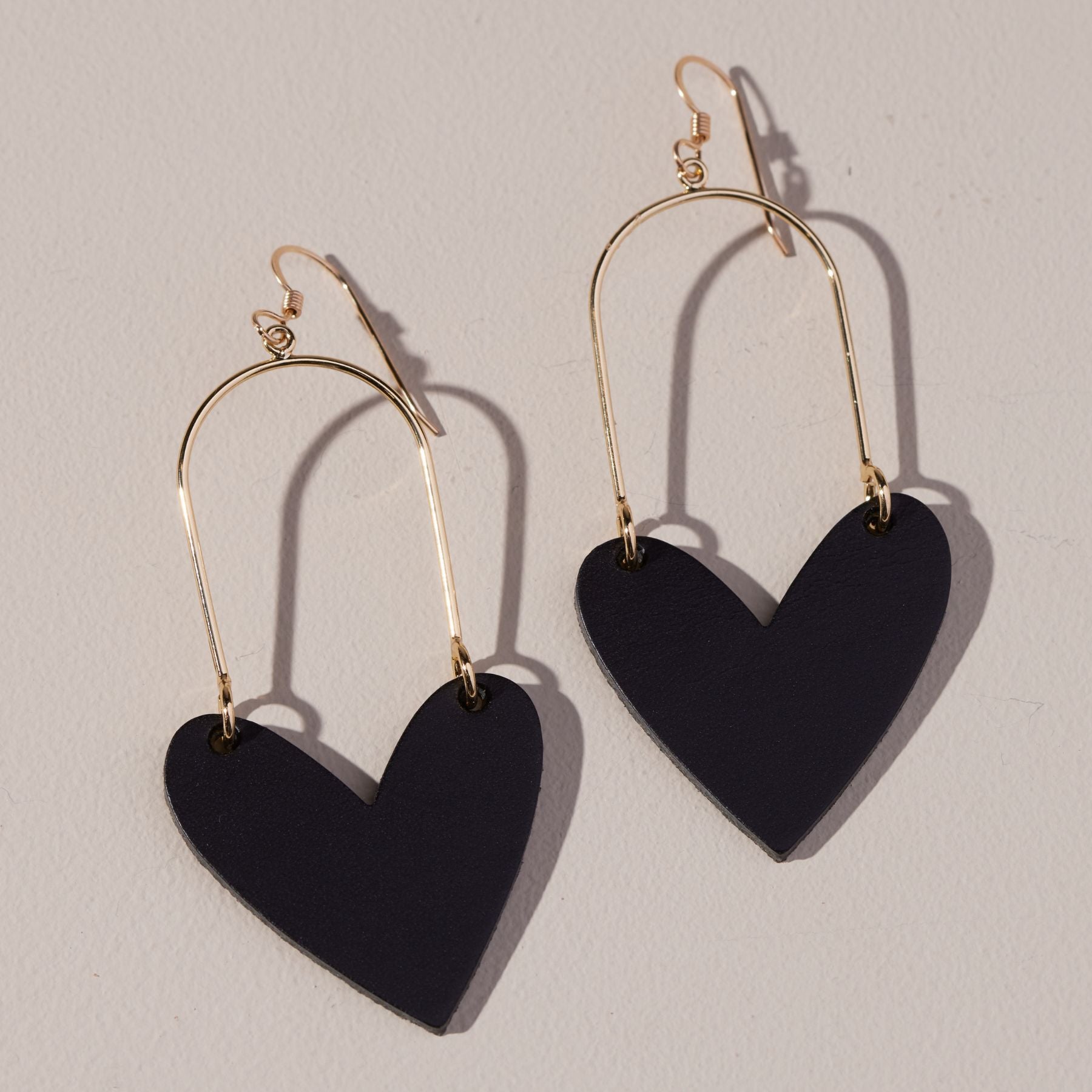Black Sweethearts feature our smooth, matte black leather in our patented heart statement shape. These lightweight statement earrings are attached to gold or silver hoop hardware for optimum shine and weightlessness.