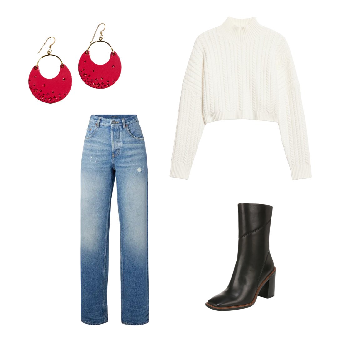 Get ready to create a starry statement and capture the essence of the holidays with these red foiled Crimson Starscape Ninas. Create a shimmery, eye-catching look with this bold accessory.