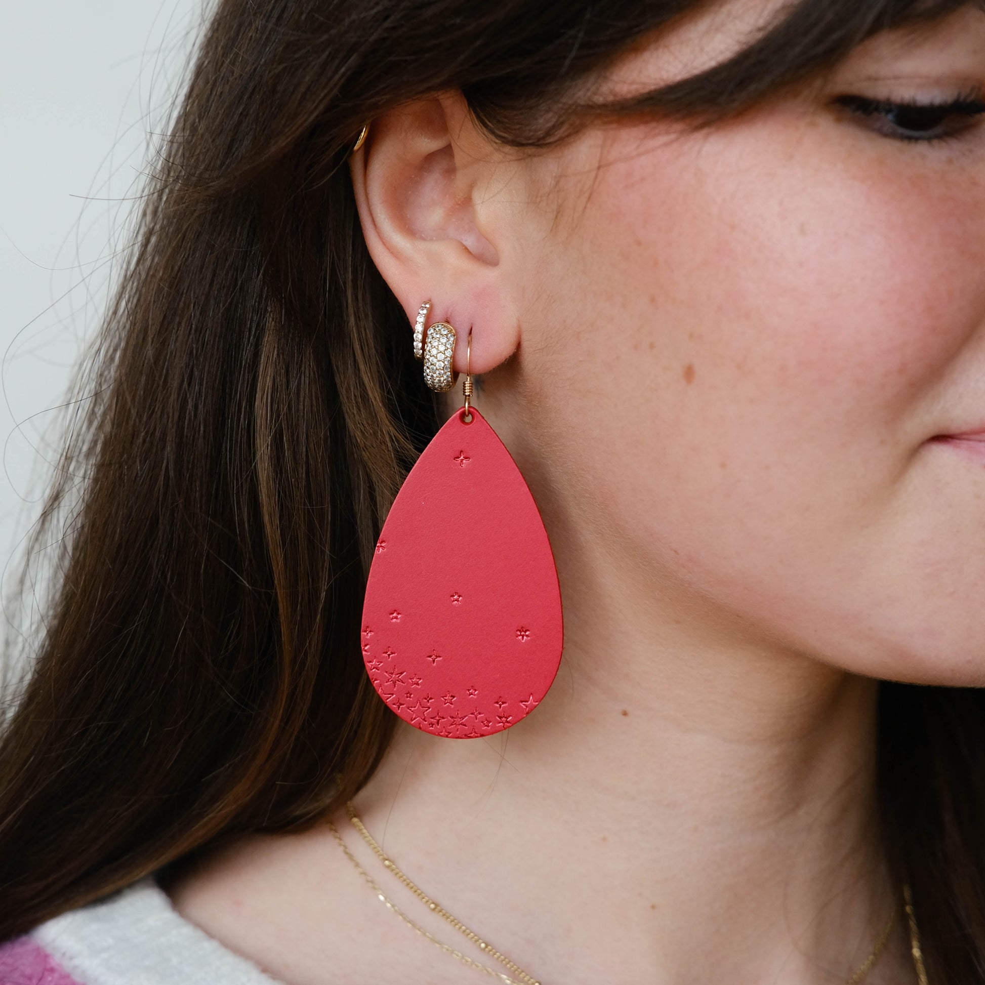Get ready to create a starry statement and capture the essence of the holidays with these red foiled Crimson Starscape Teardrops. Create a shimmery, eye-catching look with this bold accessory.