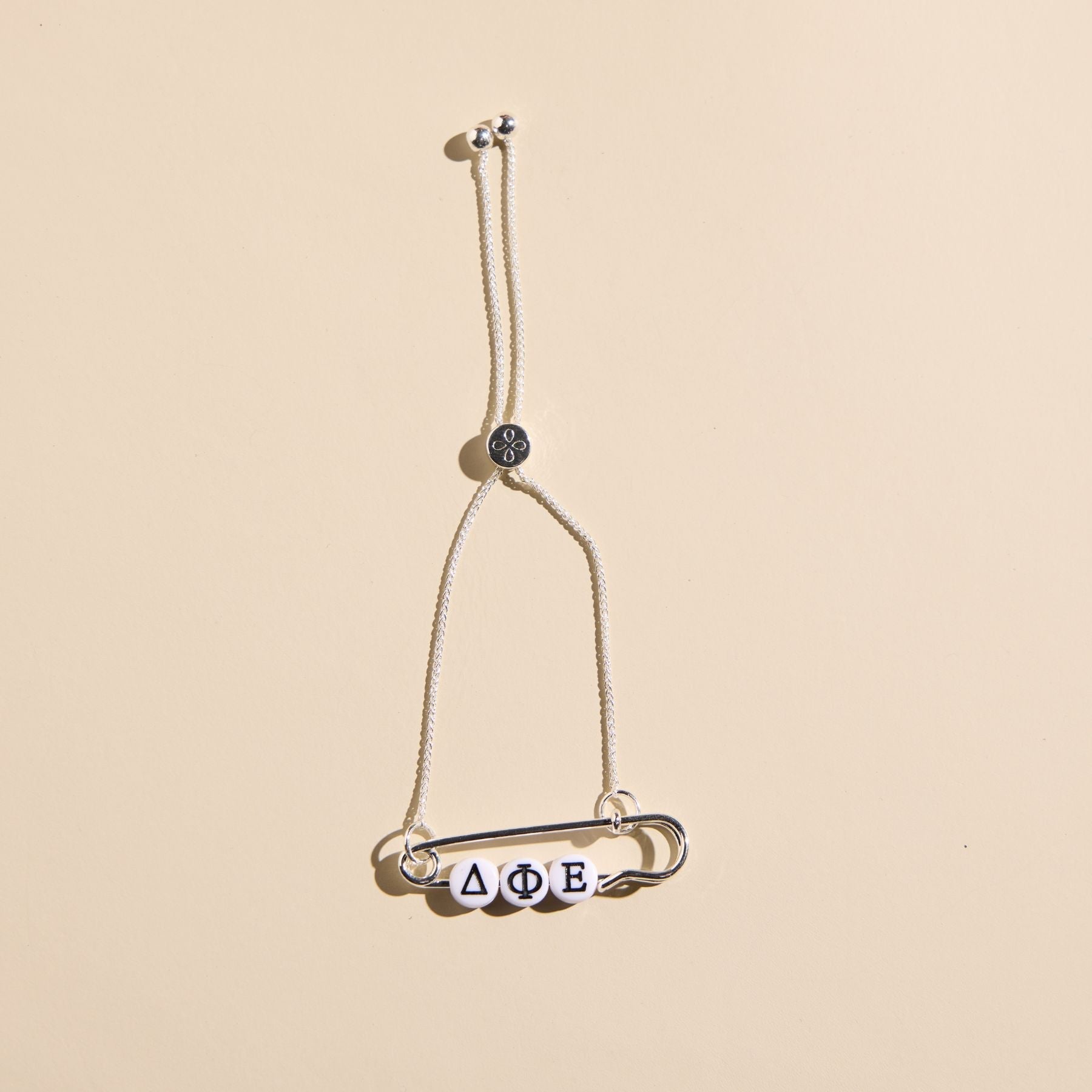 The officially licensed Sorority Safety Pin Bolo Bracelet is the perfect piece to represent your sisterhood in style. This one-of-a-kind bracelet combines our best-selling safety pin silhouette with your Greek letters.