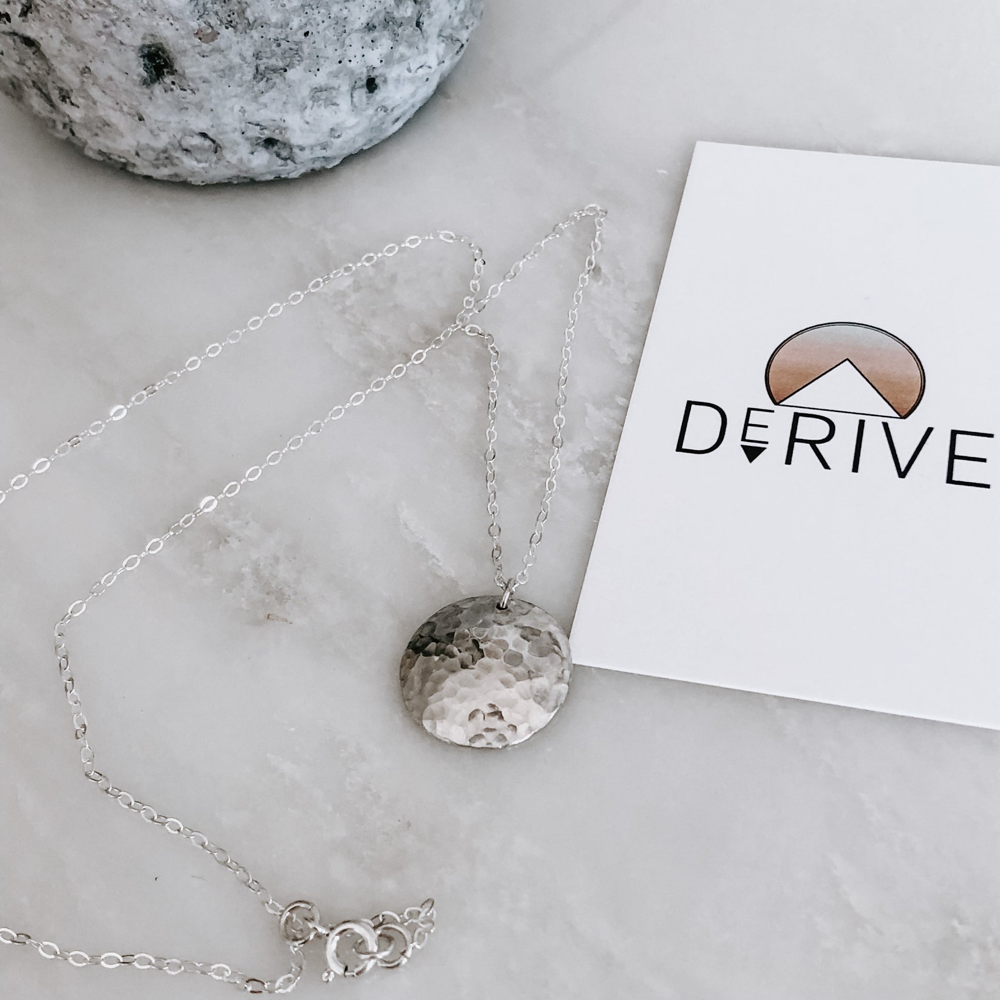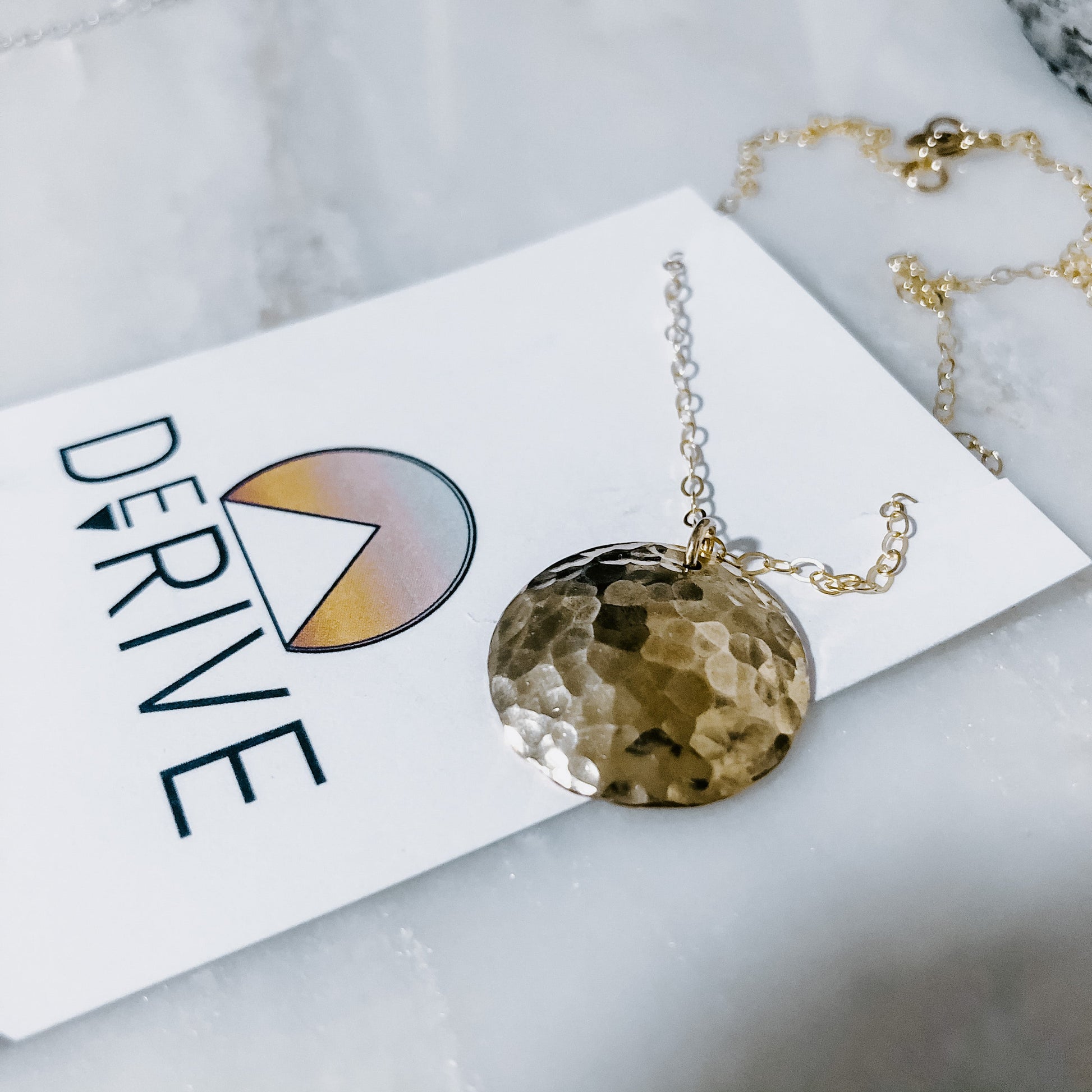 Hand hammered and shaped domed coin on dainty chain.