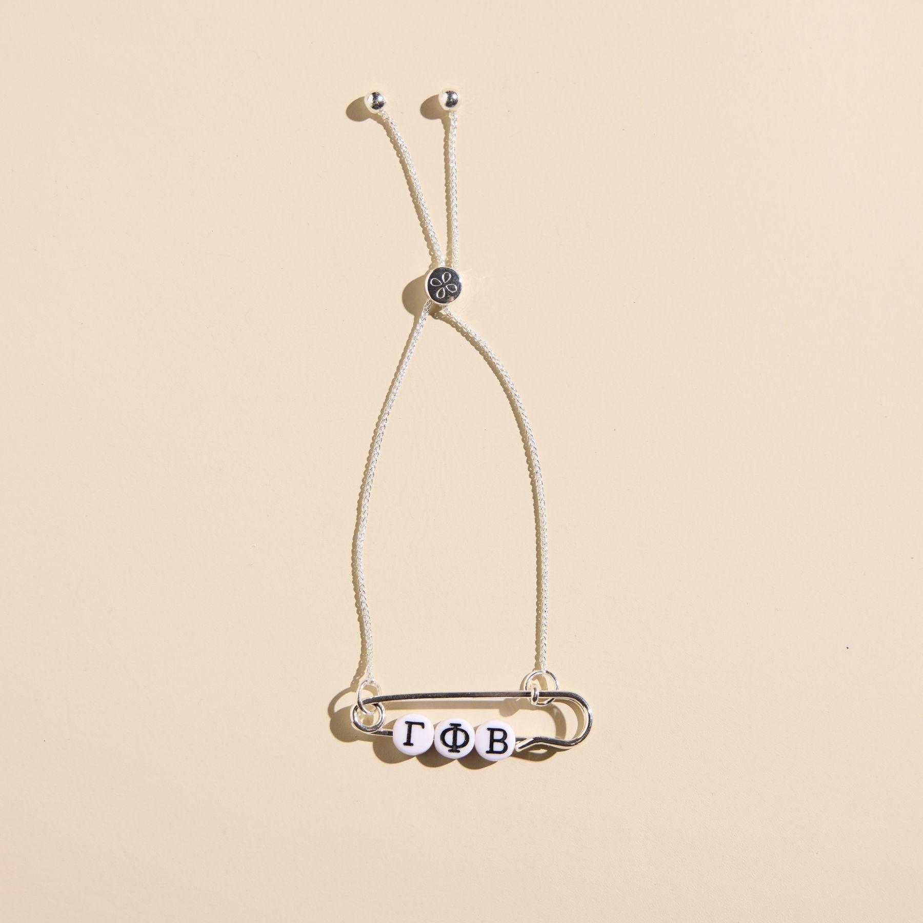 The officially licensed Sorority Safety Pin Bolo Bracelet is the perfect piece to represent your sisterhood in style. This one-of-a-kind bracelet combines our best-selling safety pin silhouette with your Greek letters.