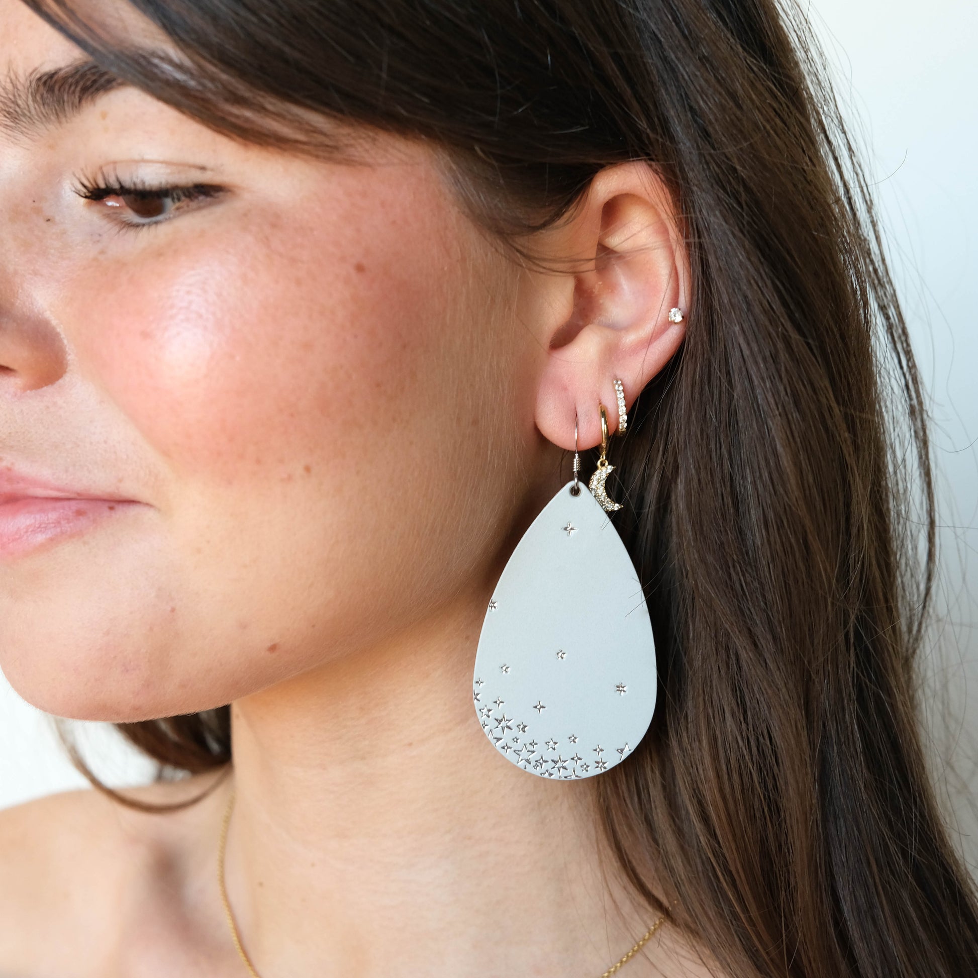 Get ready to create a starry statement and capture the essence of the holidays with these silver foiled Gray Starscape Teardrops. Create a shimmery, eye-catching look with this bold accessory.
