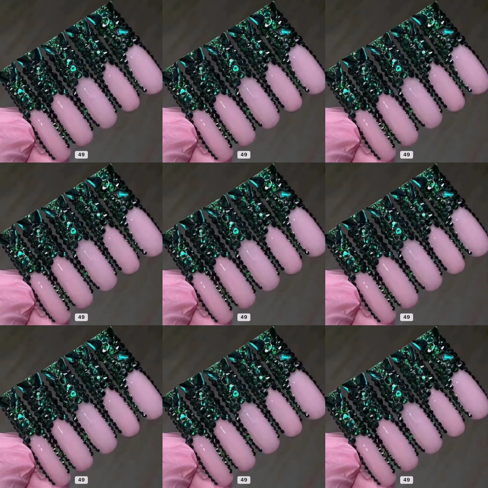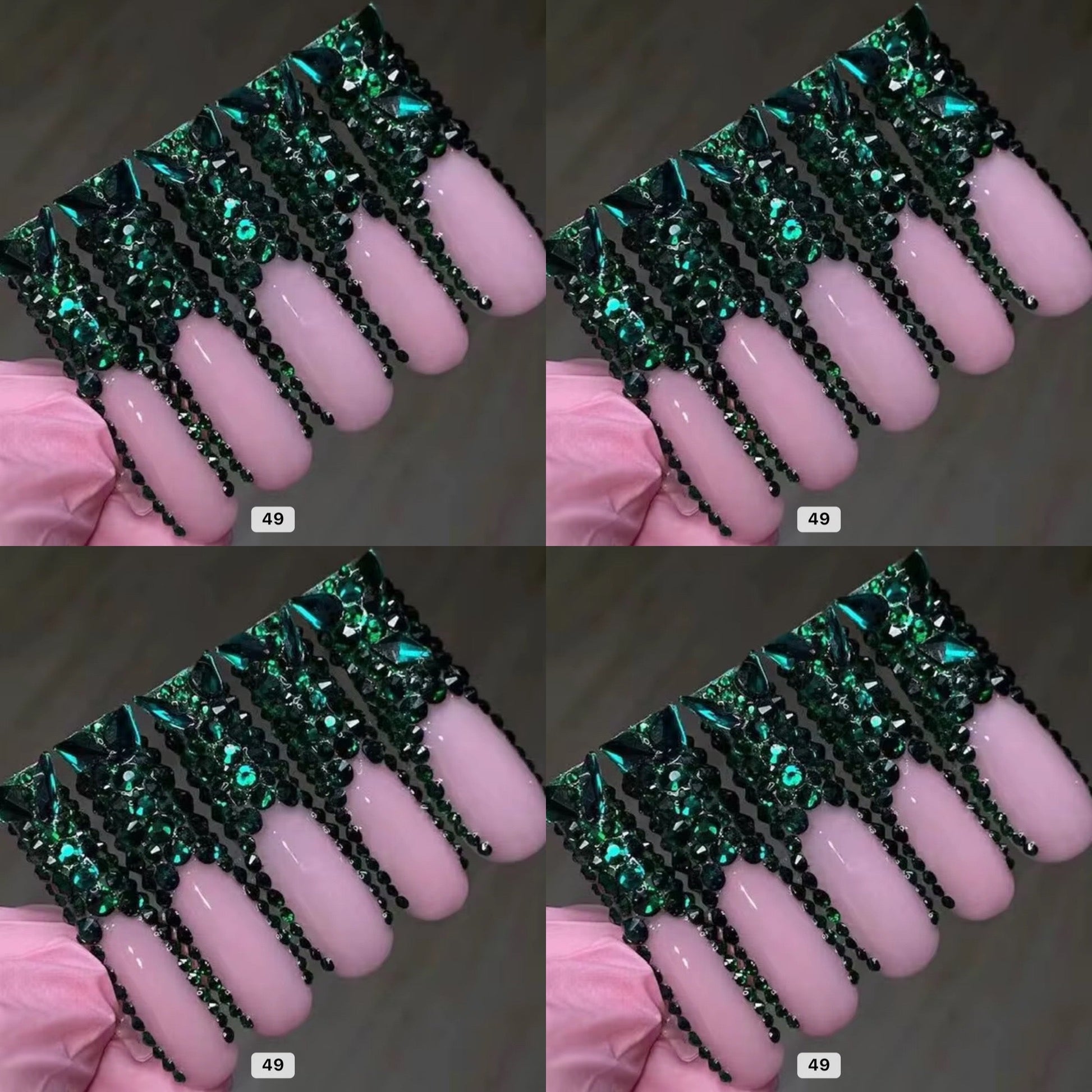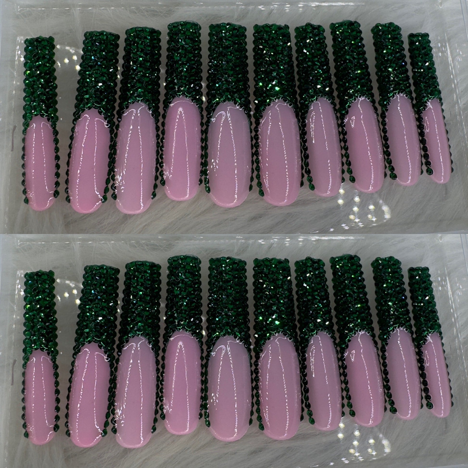 Green crystal long press on nails