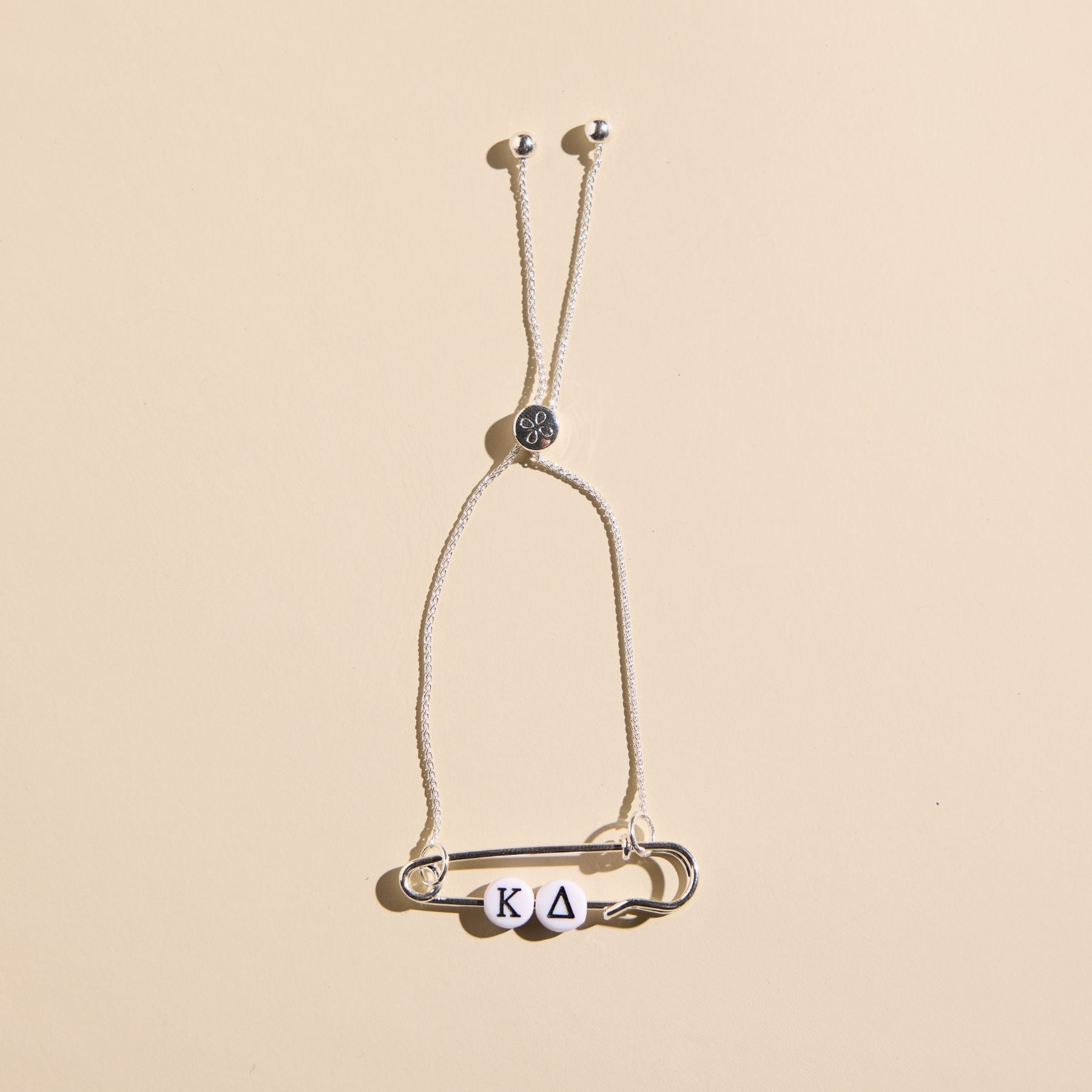 The officially licensed Sorority Safety Pin Bolo Bracelet is the perfect piece to represent your sisterhood in style. This one-of-a-kind bracelet combines our best-selling safety pin silhouette with your Greek letters.