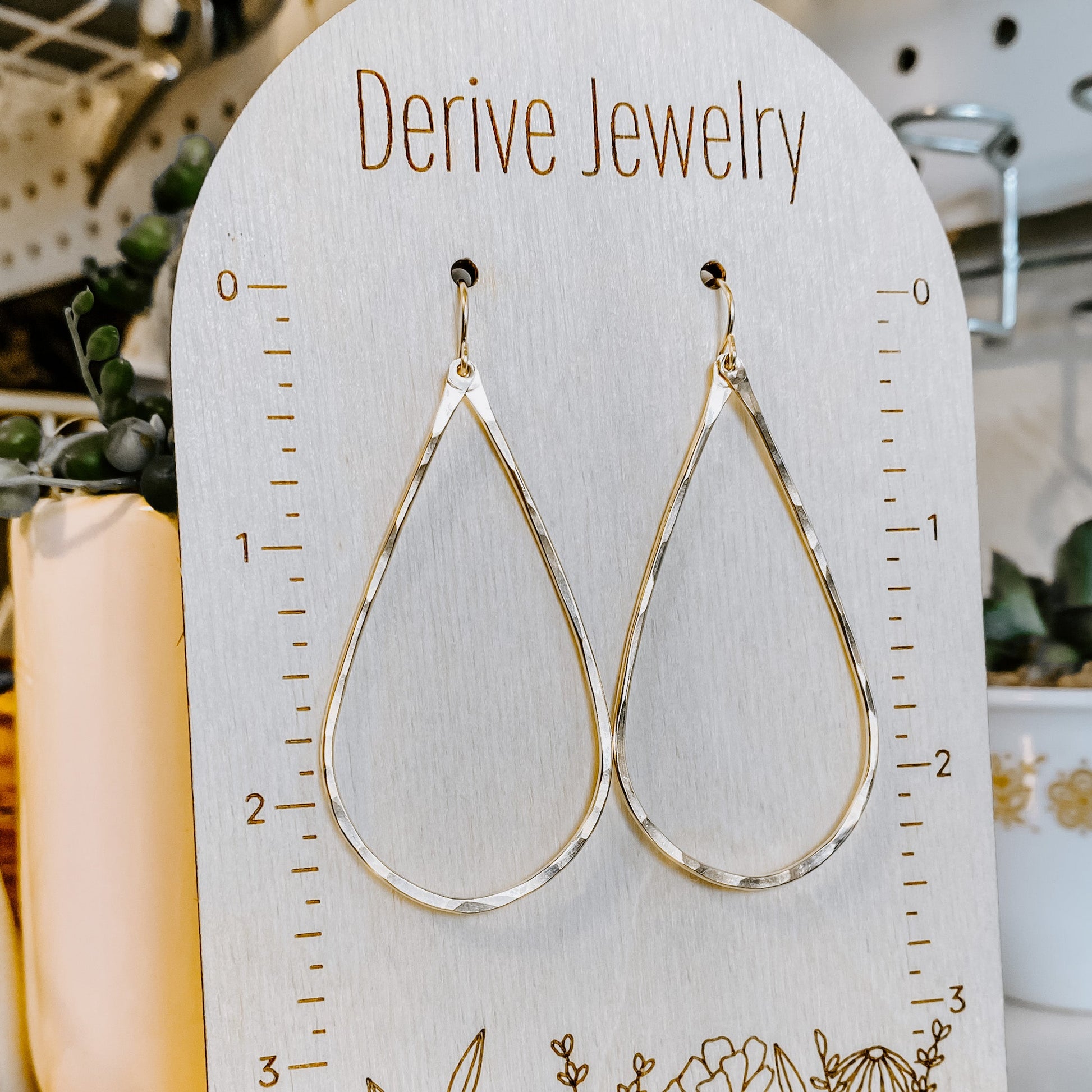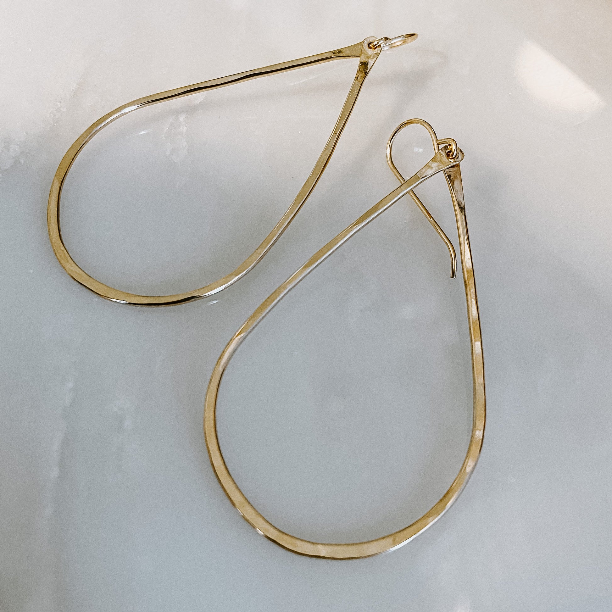 Classy, timeless, refined. Hand shaped and hammered teardrops have a touch of modern flare in a fanned out hand hammered style.