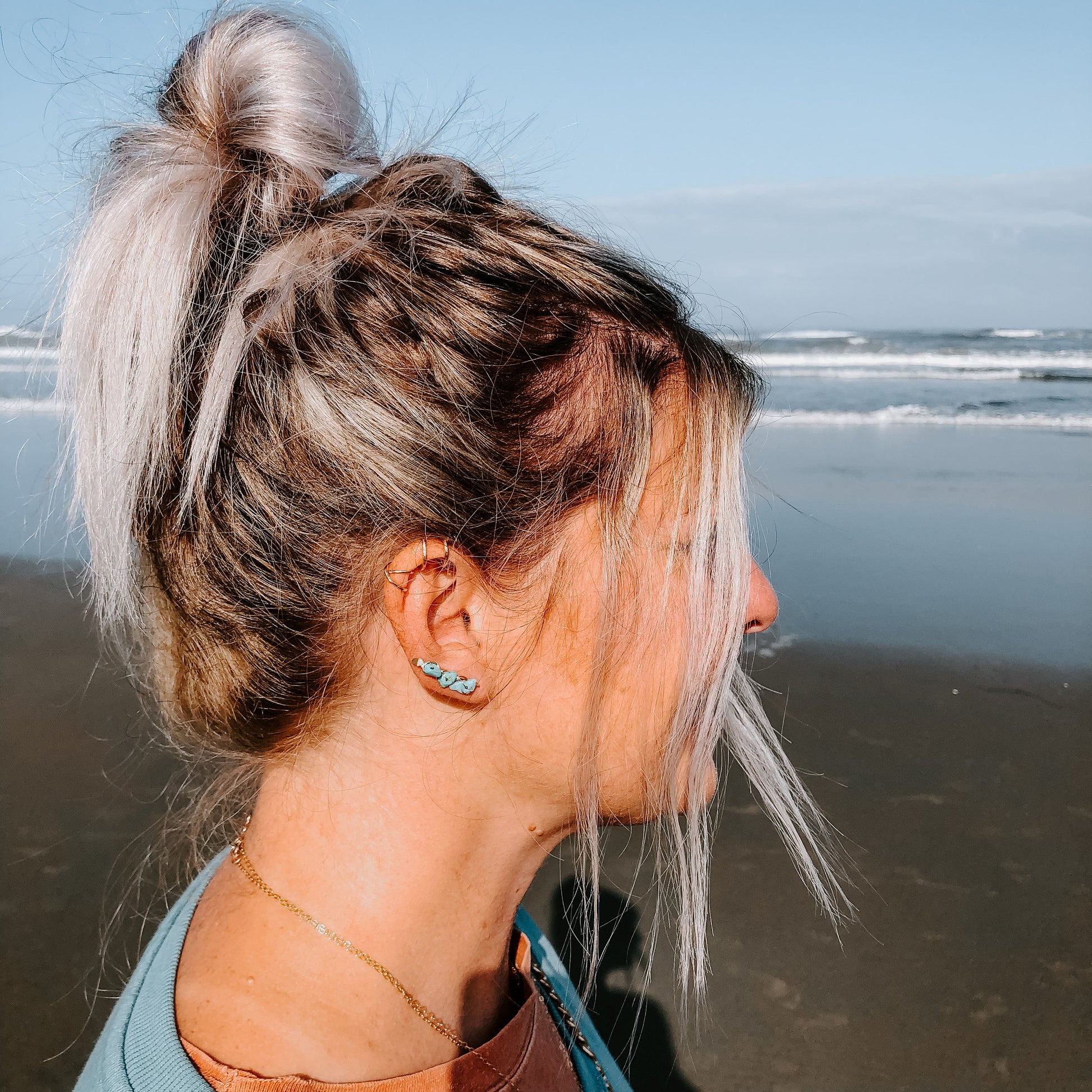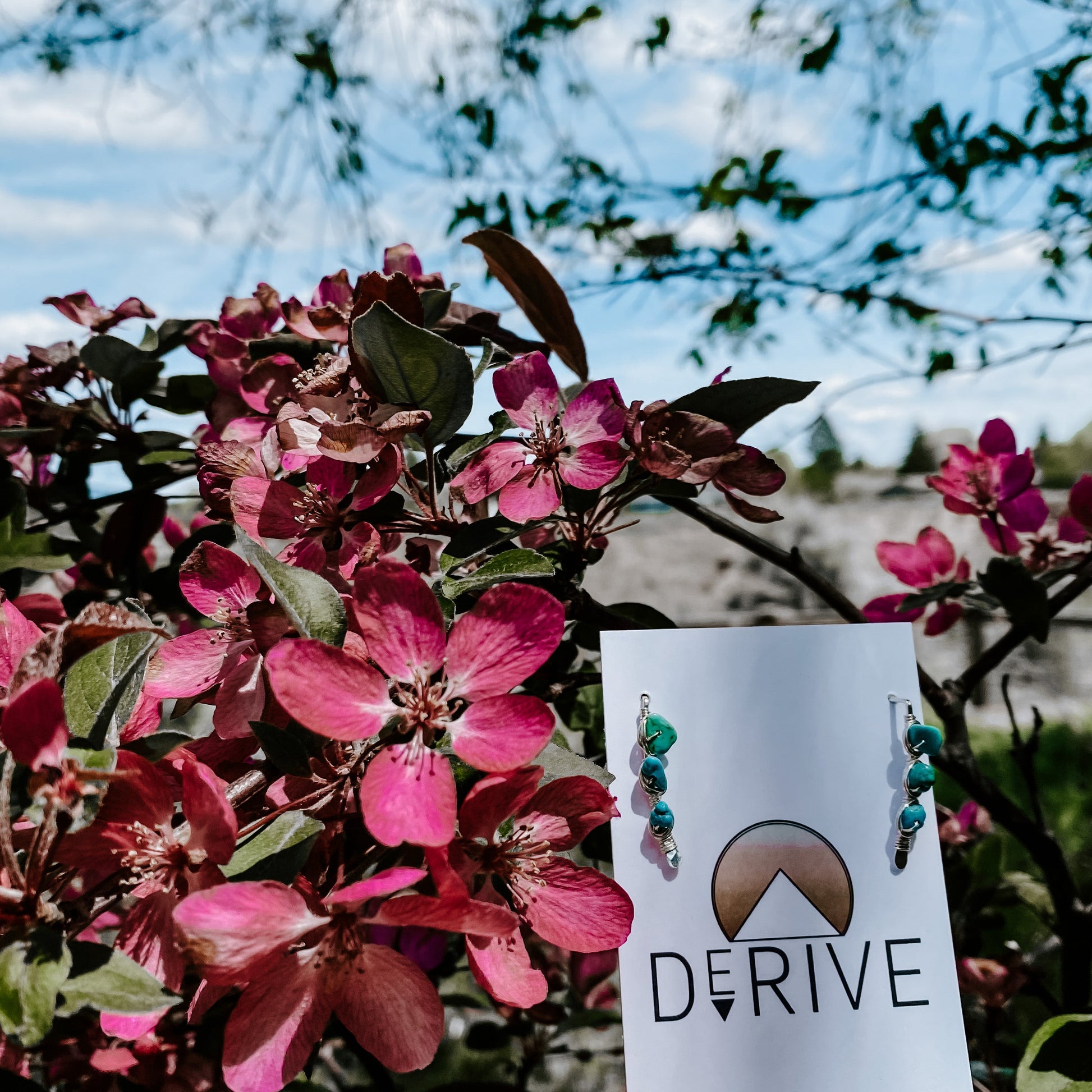 Handmade ear climber earrings, with Kingman turquoise wire wrapped.