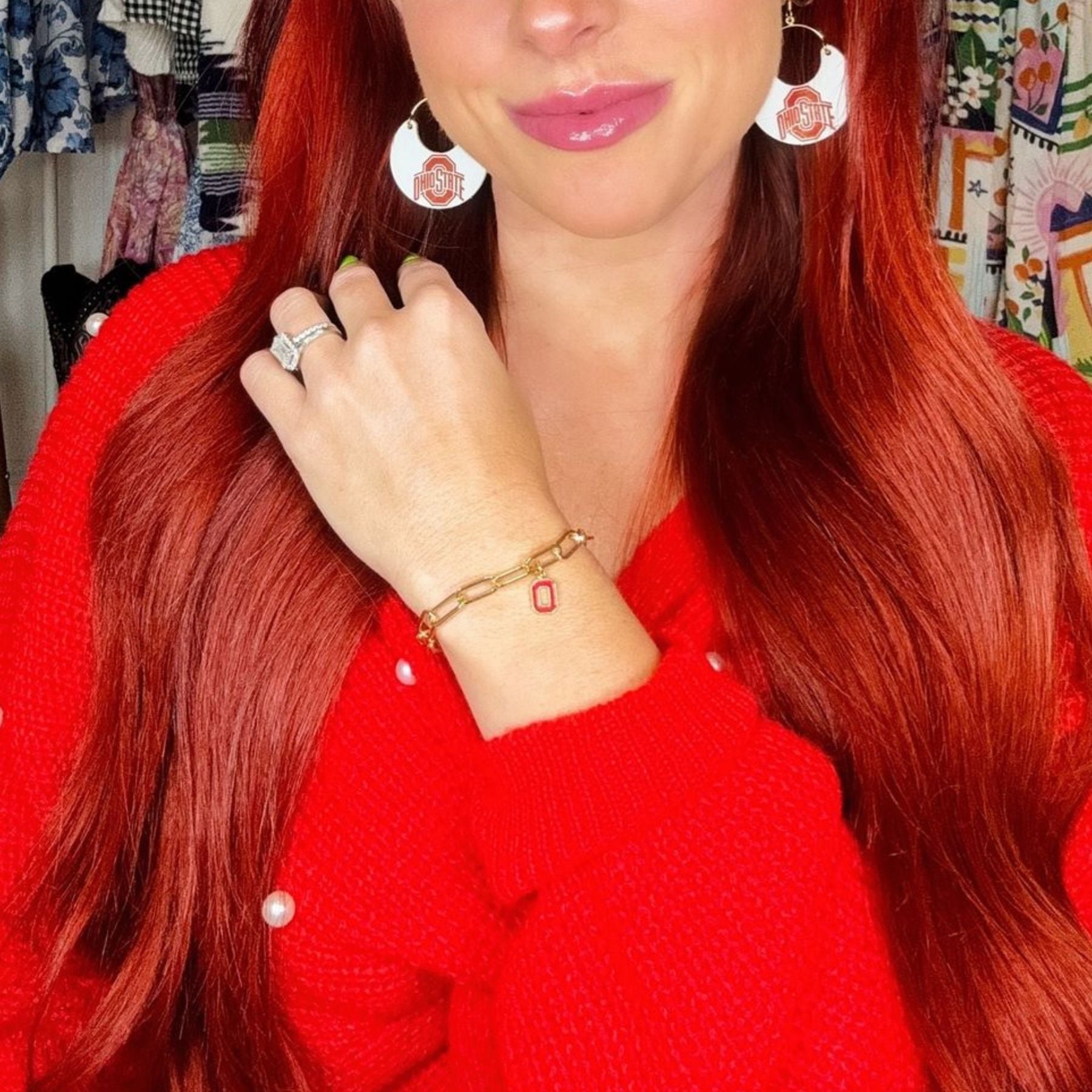 Our Paper Clip Chain Bracelet is the perfect dainty bracelet to customize for game day. Wear alone for a minimal and elegant look with The Ohio State University Charm Bracelet "O" charm or add a touch of your own essence with your own charms.
