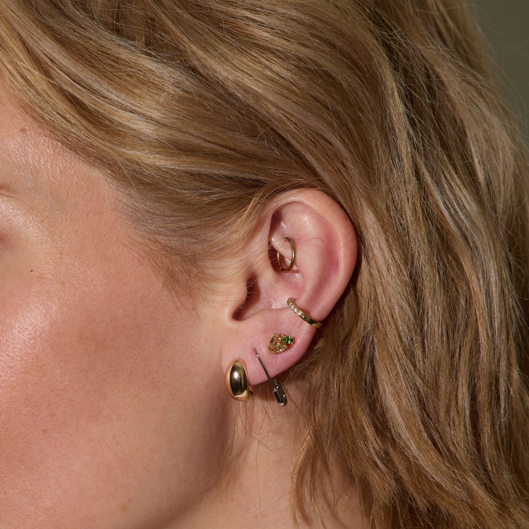 Our Peach Studs feature a sparkling peach and green glass stone paired with a for the perfect peachy statement stud look. These studs are perfect for effortless wear and comfort, or the statement style stacked look.