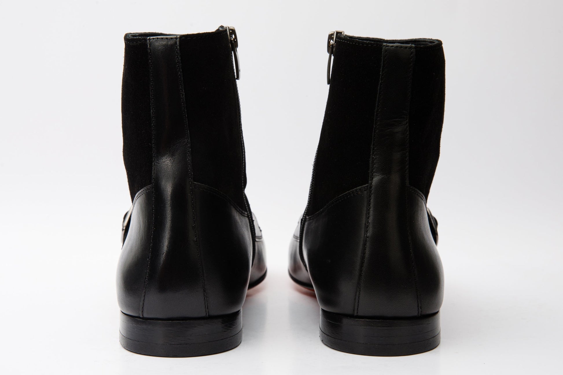 Preston Black Leather & Suede Double Monk Strap Ankle Boot with a Zipper: Timeless Elegance and Effortless Style