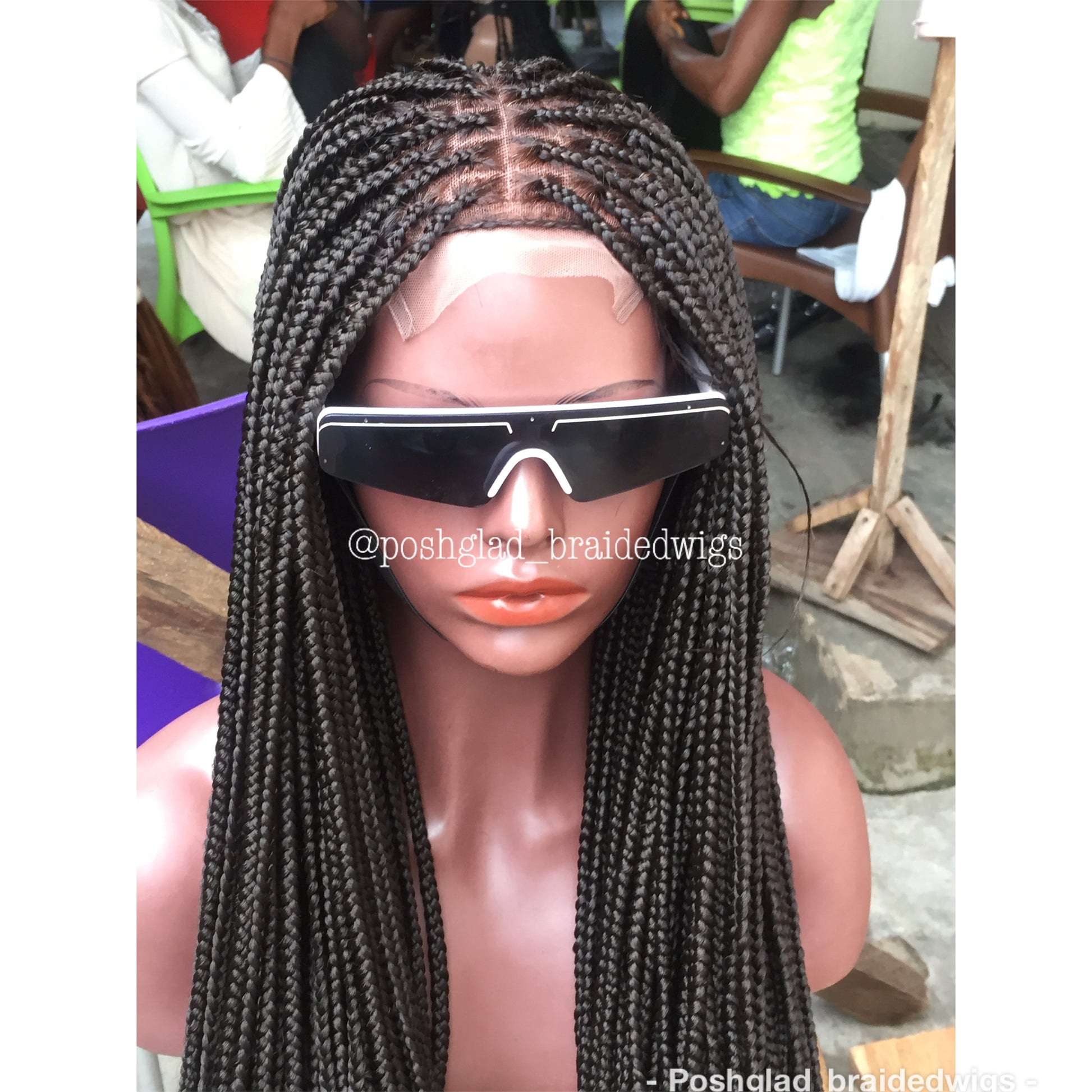 Introducing our scalp-looking glueless box braid wig handcrafted from 100% Human hair on a top-quality 4by4 closure lace and black stretchable mesh cap. This premium quality wig features hair pieces, no combs, or an adjustable rubber band. With the proper care, this wig is designed to last between 2-3 years. Poshglad Braided Wigs - the perfect braided wigs for any occasion