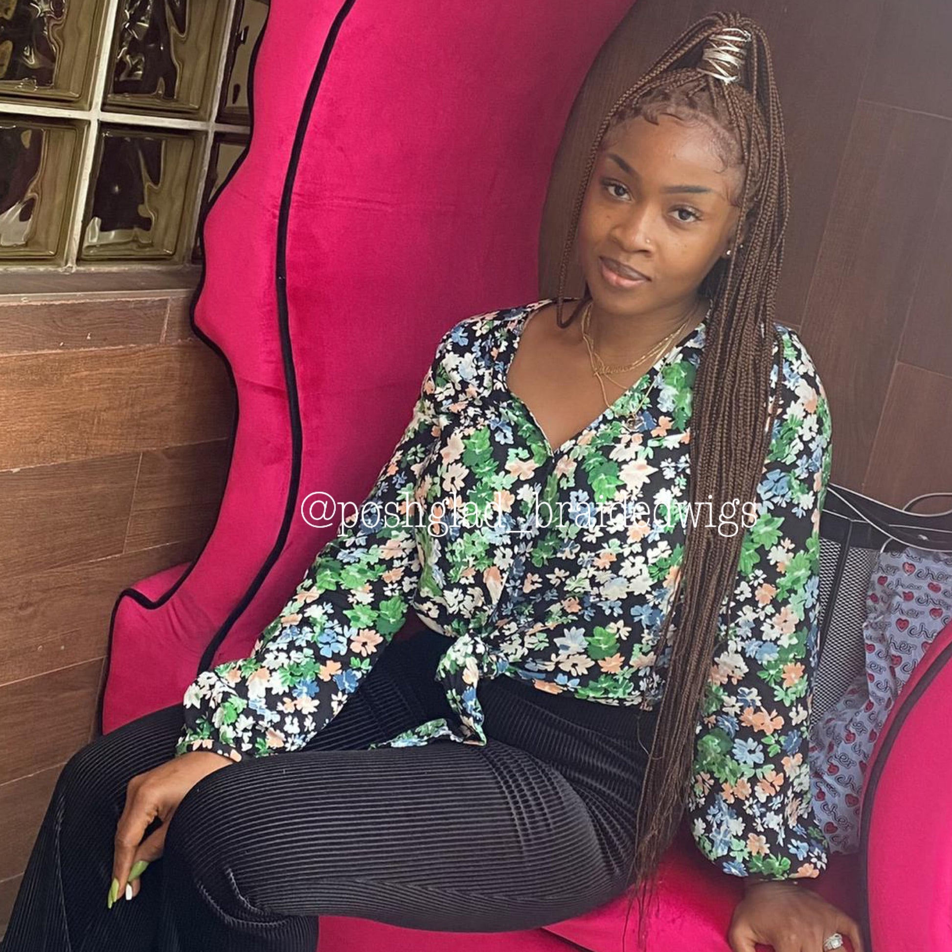 This style of our SHADE KNOTLESS BRAID is made with 100% full lace human hair with baby hair. It is neatly and tightly done for a long lasting use.. No more sitting down for 12 hours in a salon, like gurrrl No. Get your wig on and go. Study shows that braiding on your natural hair causes long term alopecia, an unbearable pain and that Ostrich neck after sitting down for 12 hours lol. With poshglad braided wig, just put your wig on and go, no time to waste.