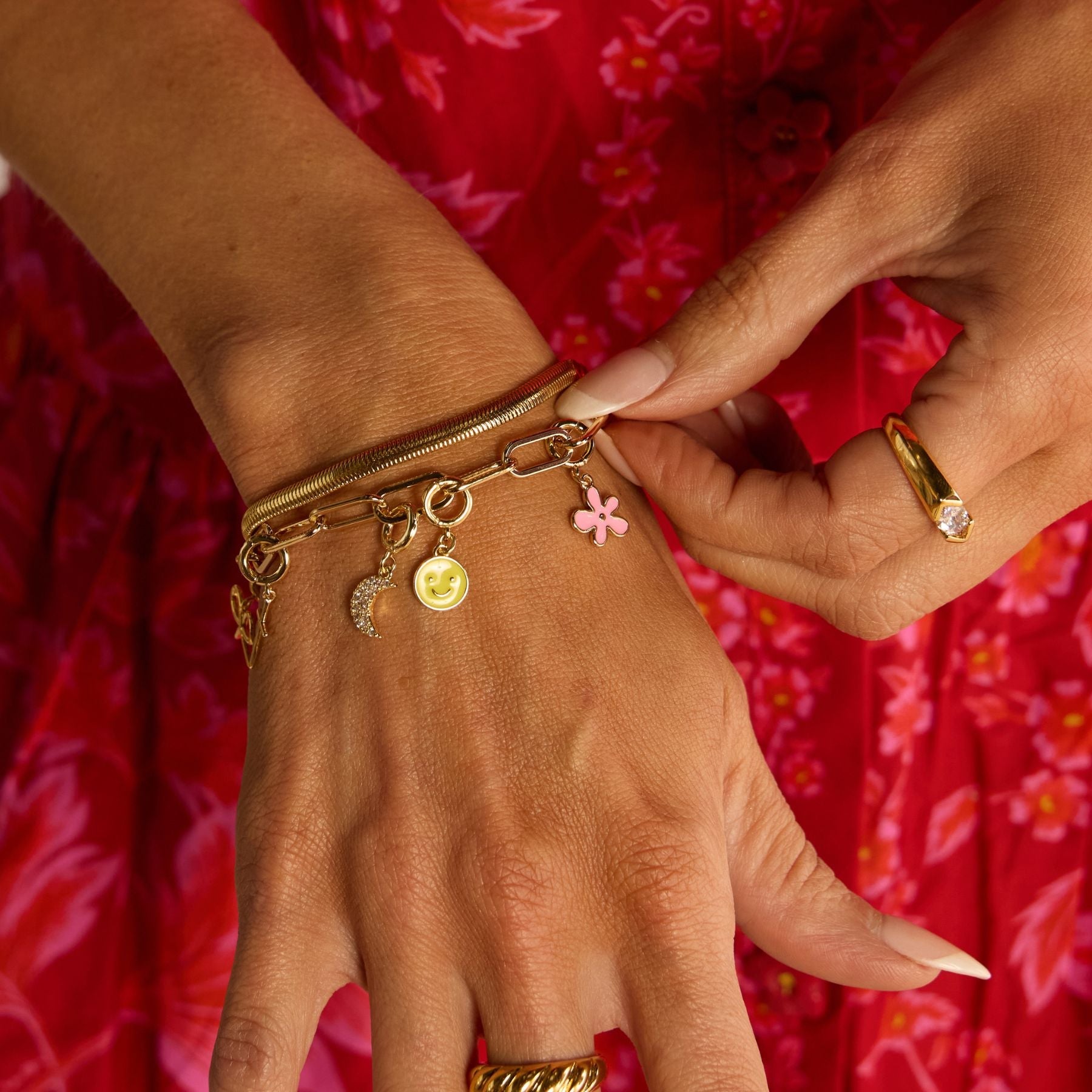 Add this Smiley Face Charm to your Charm Necklaces, or any other piece of jewelry for a unique and personalized touch! Customize with with your favorite piece of jewelry, like a huggie hoop or bracelet, with a simple clasp that opens and closes with ease.