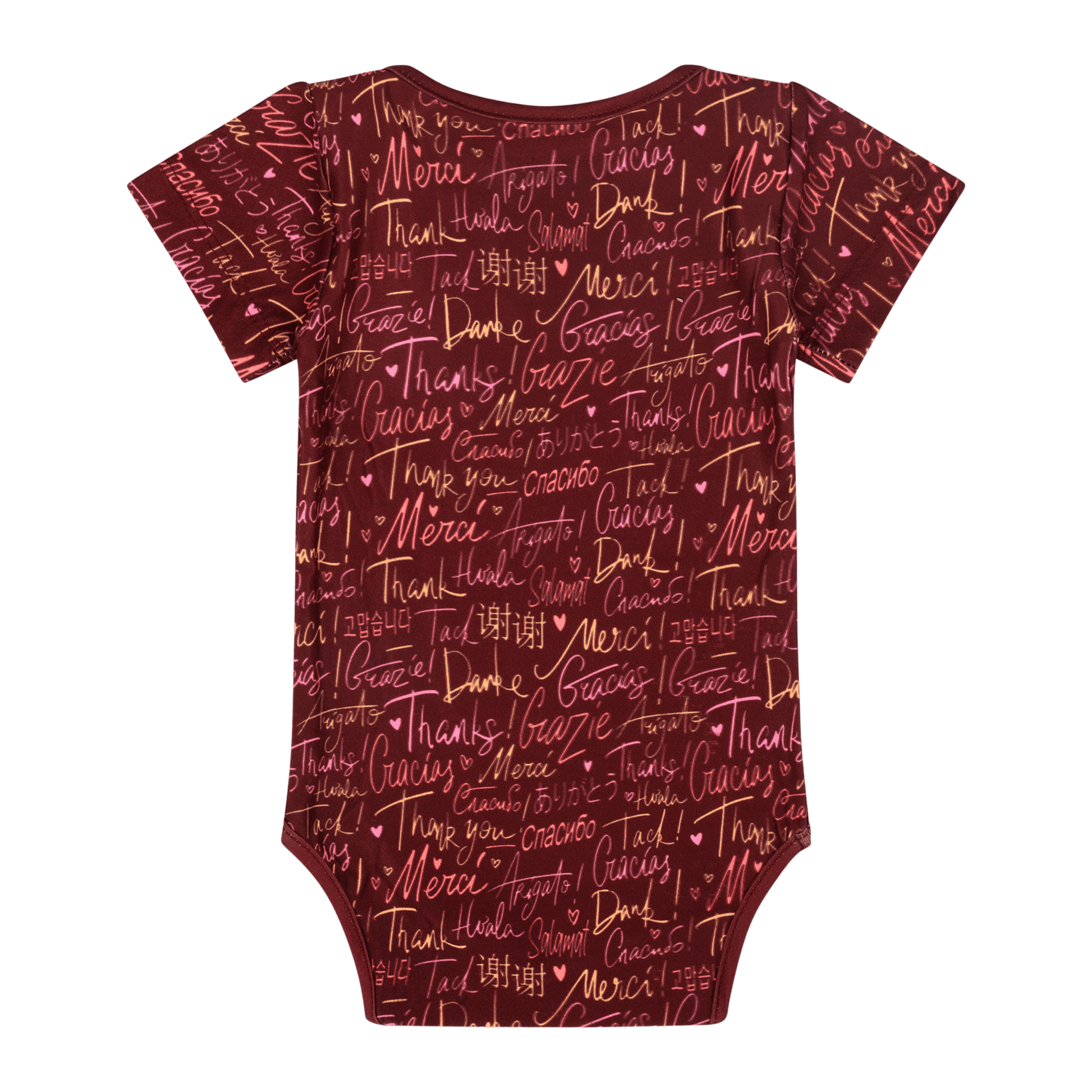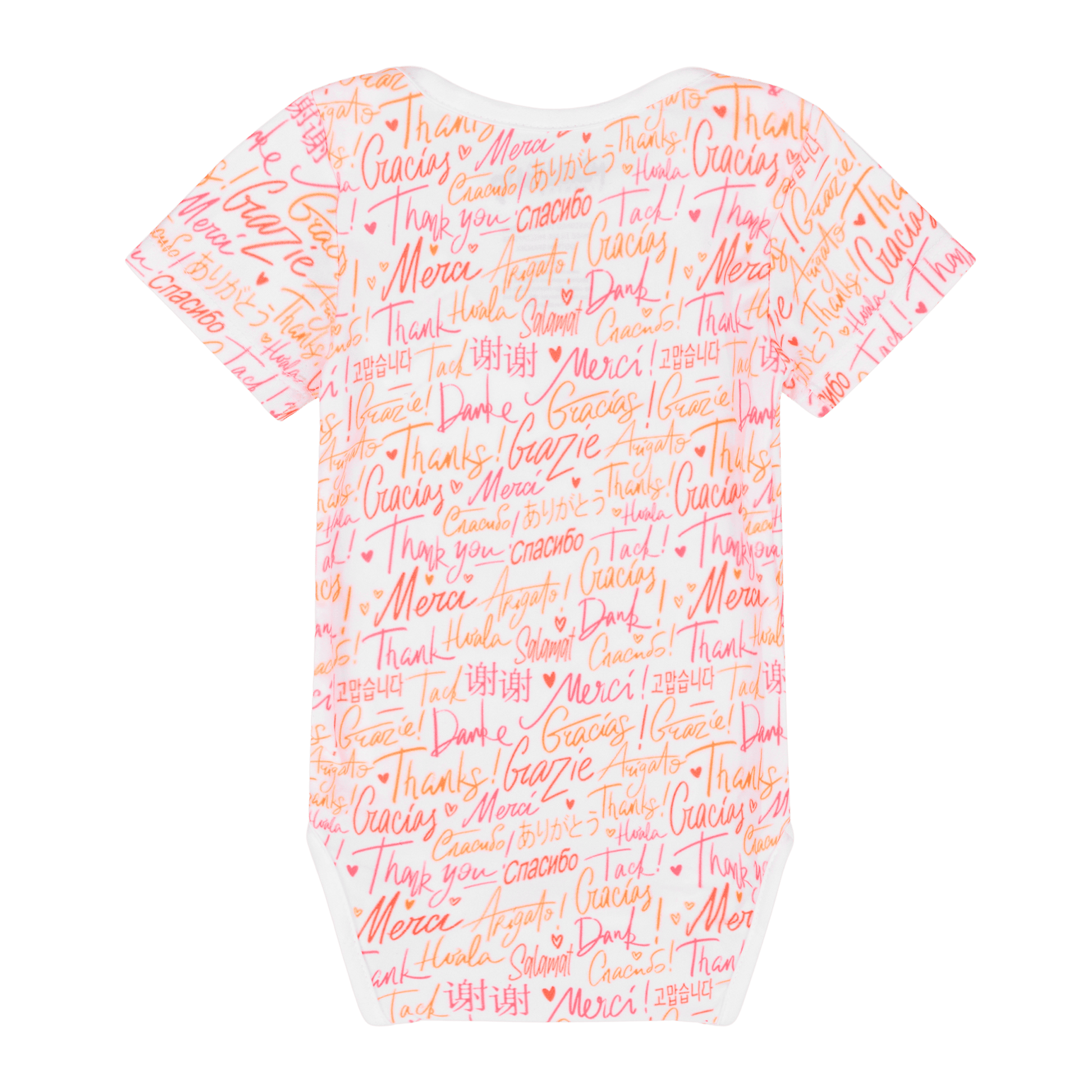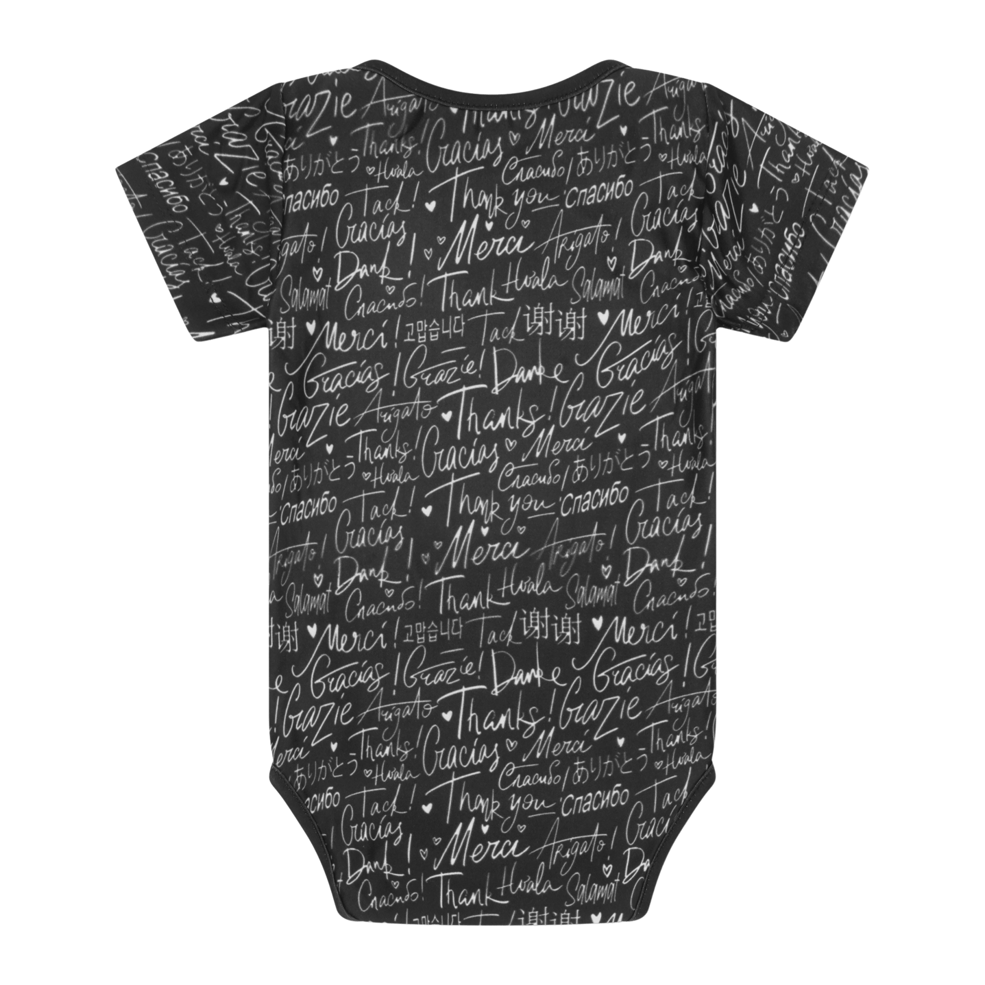 Express Thank You in different languages in these comfy infant bodysuits by Mixed Up Clothing featuring an all over print with thank you in different languages.