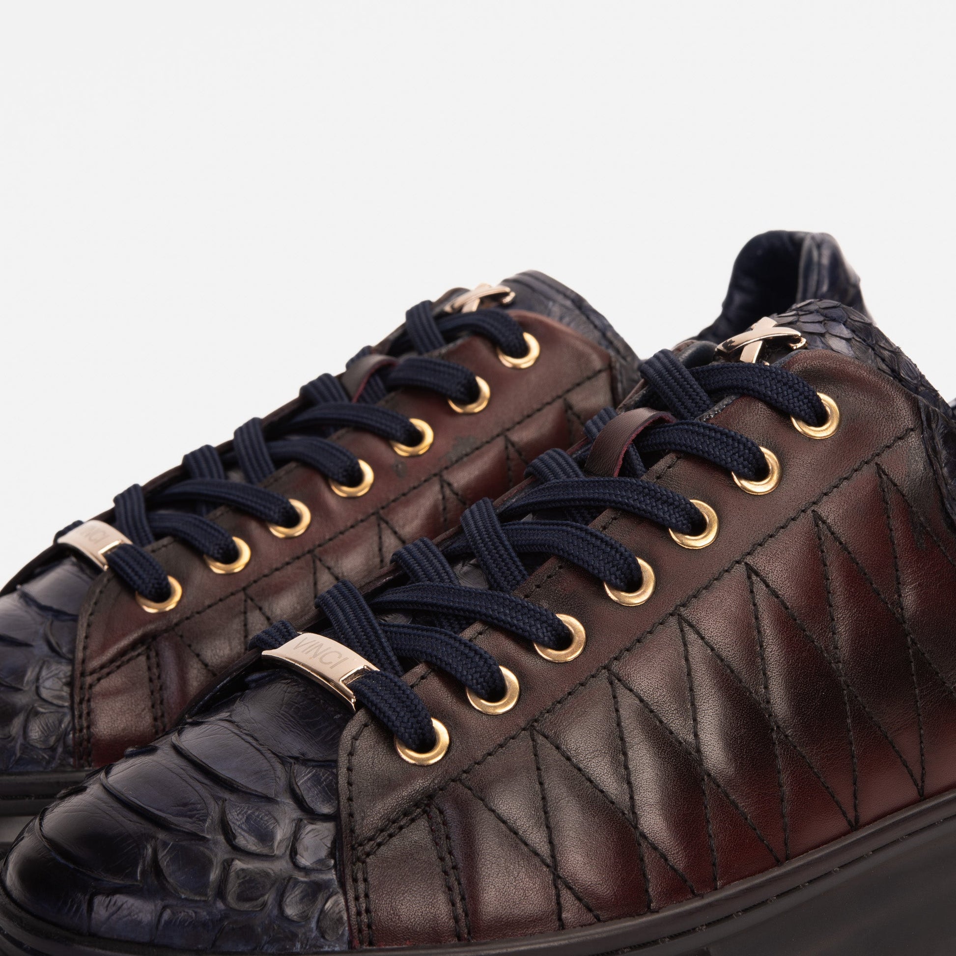 The Adler Navy Blue & Burgundy Snk Leather Men Sneaker Limited Edition