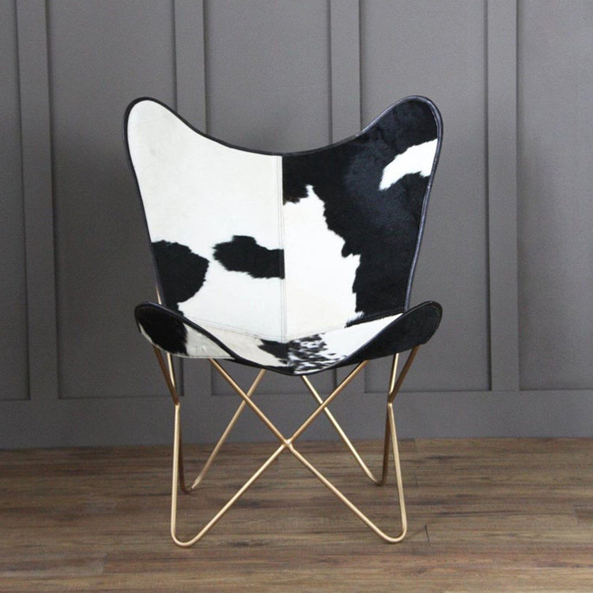 Expand your seating options with these handmade cowhide leather butterfly chairs. This handmade chair features sturdy metal frames for the highest level of durability and support.
