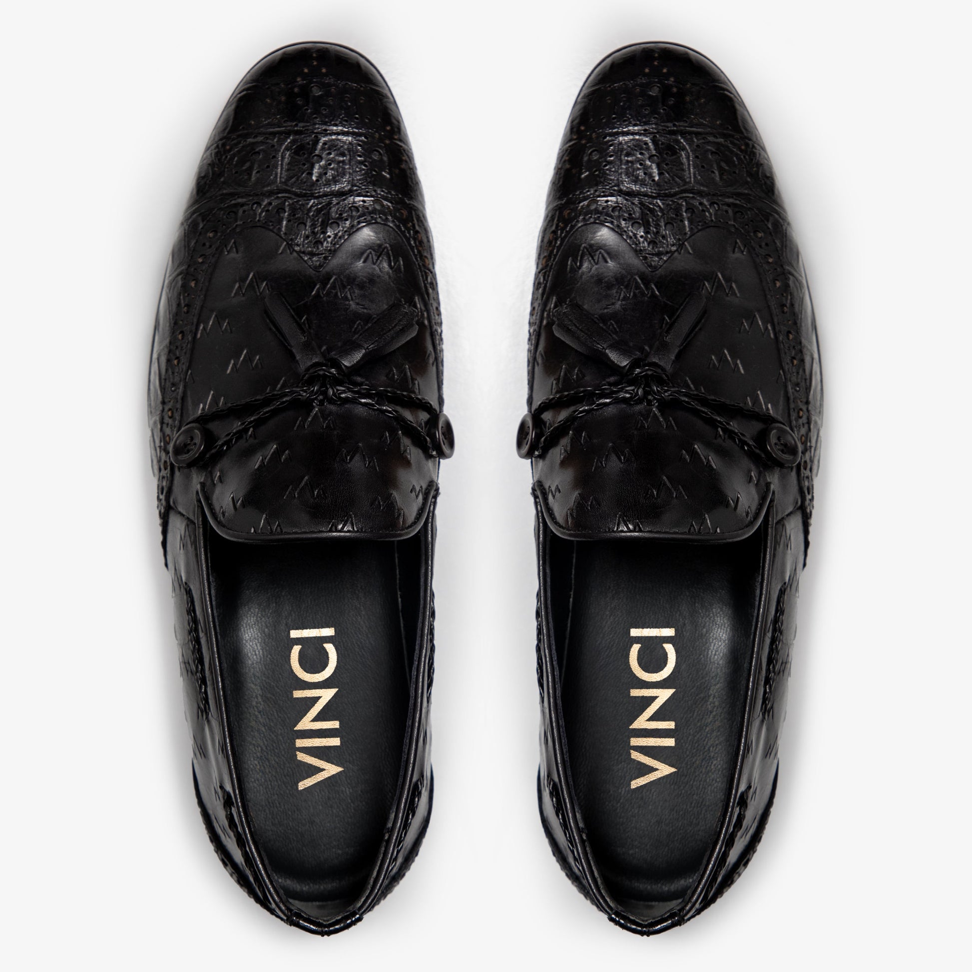 Artful Tassel Detailing: The black leather tassel, adorned with two complementary black buttons, adds a touch of playfulness and character to the loafer. Skillfully crafted leather secures the tassels in place, enhancing the overall design with a touch of artistry.