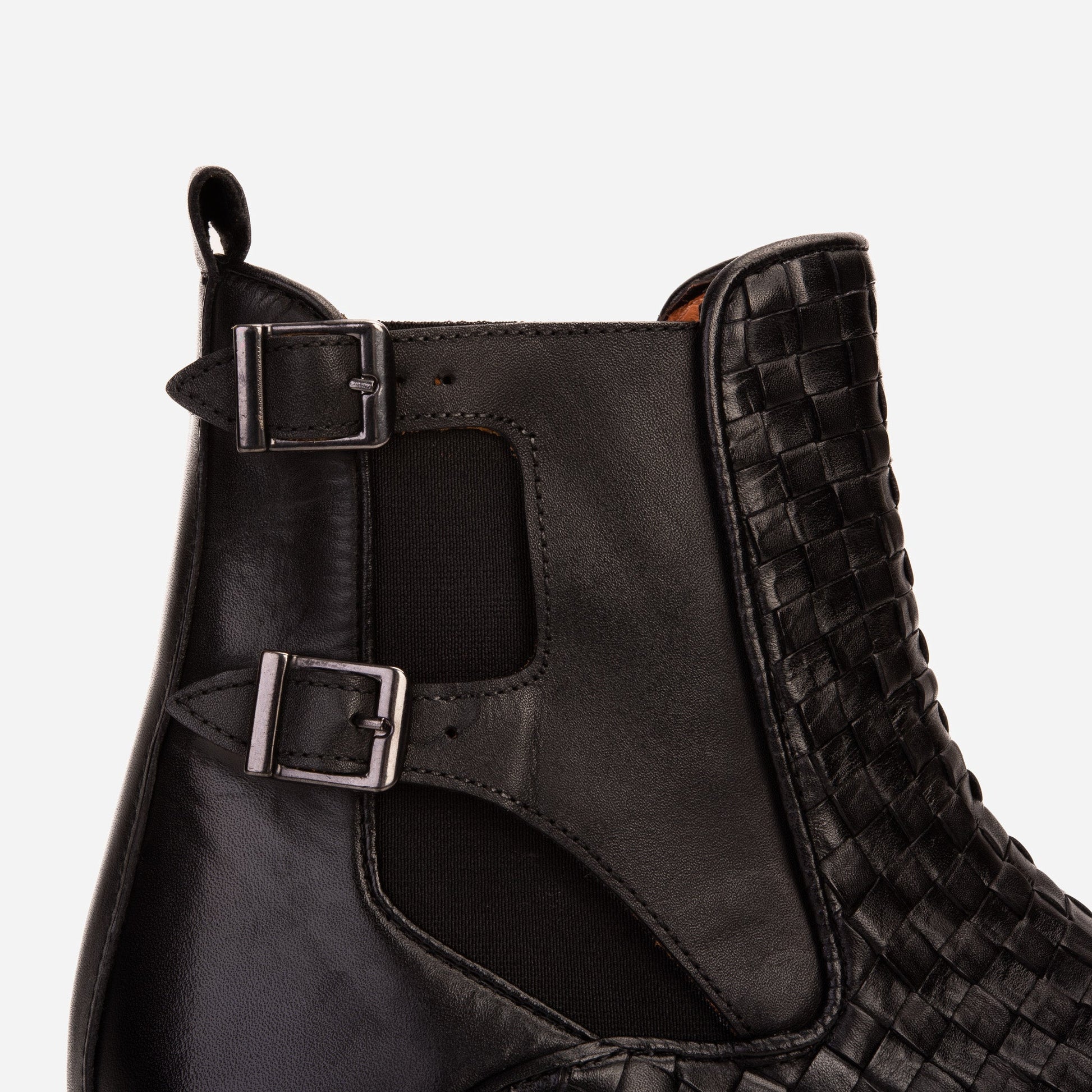 Exquisite Handwoven Leather Detail: Immerse yourself in the intricate artistry of handwoven leather, meticulously crafted to perfection. The double monk strap design showcases a unique and elegant pattern, adding a distinctive touch to the Rolls Boot.