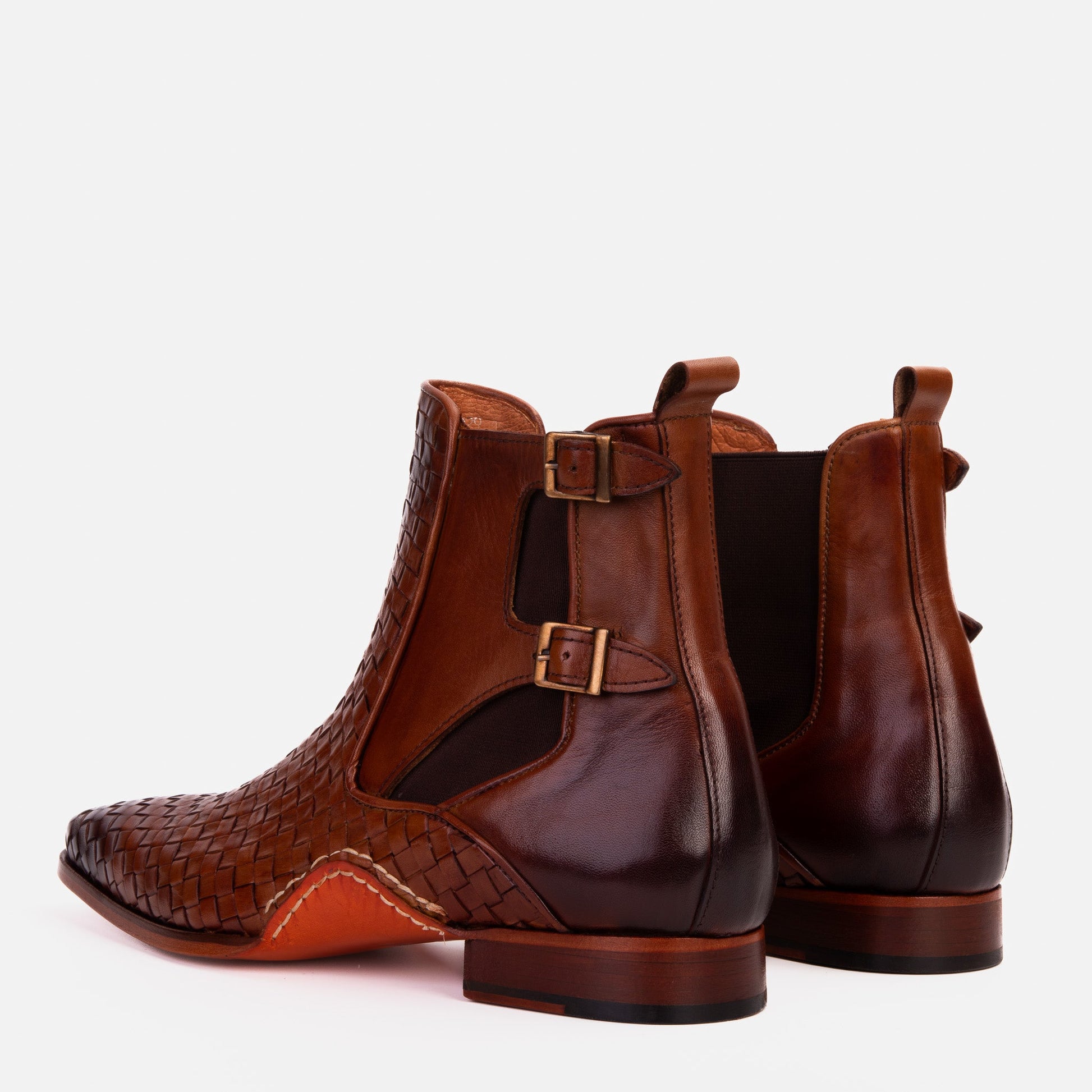 Rolls Boot Woven Tan Leather Double Monk Strap Handmade Boot: A Symphony of Craftsmanship and Style