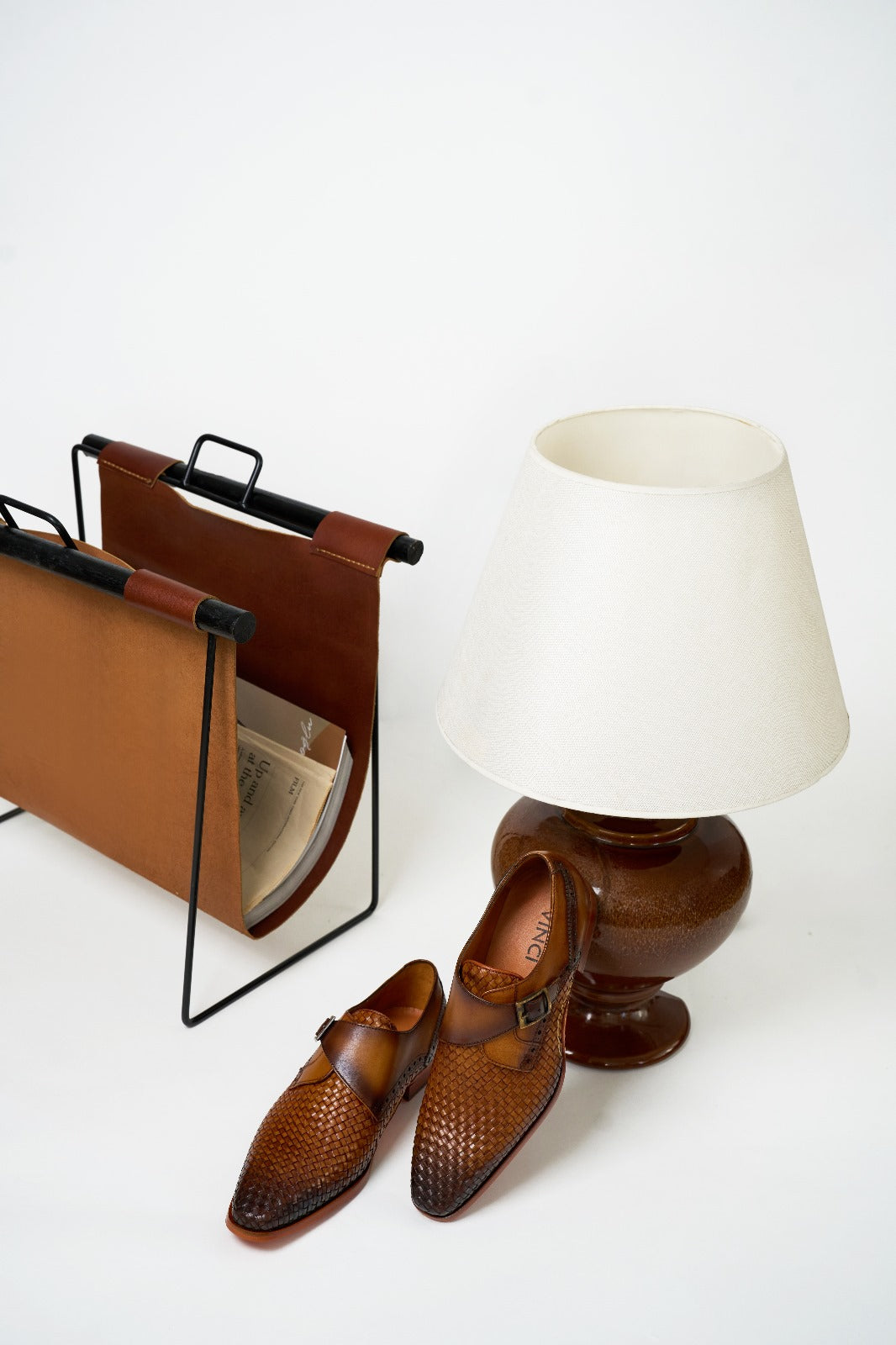 Step into timeless sophistication with the Rolls Woven Tan Leather Single Monk Strap Dress Shoe. Meticulously crafted from premium brown calf leather, this handwoven masterpiece combines artisanal excellence with classic style, making it a must-have for any discerning wardrobe.