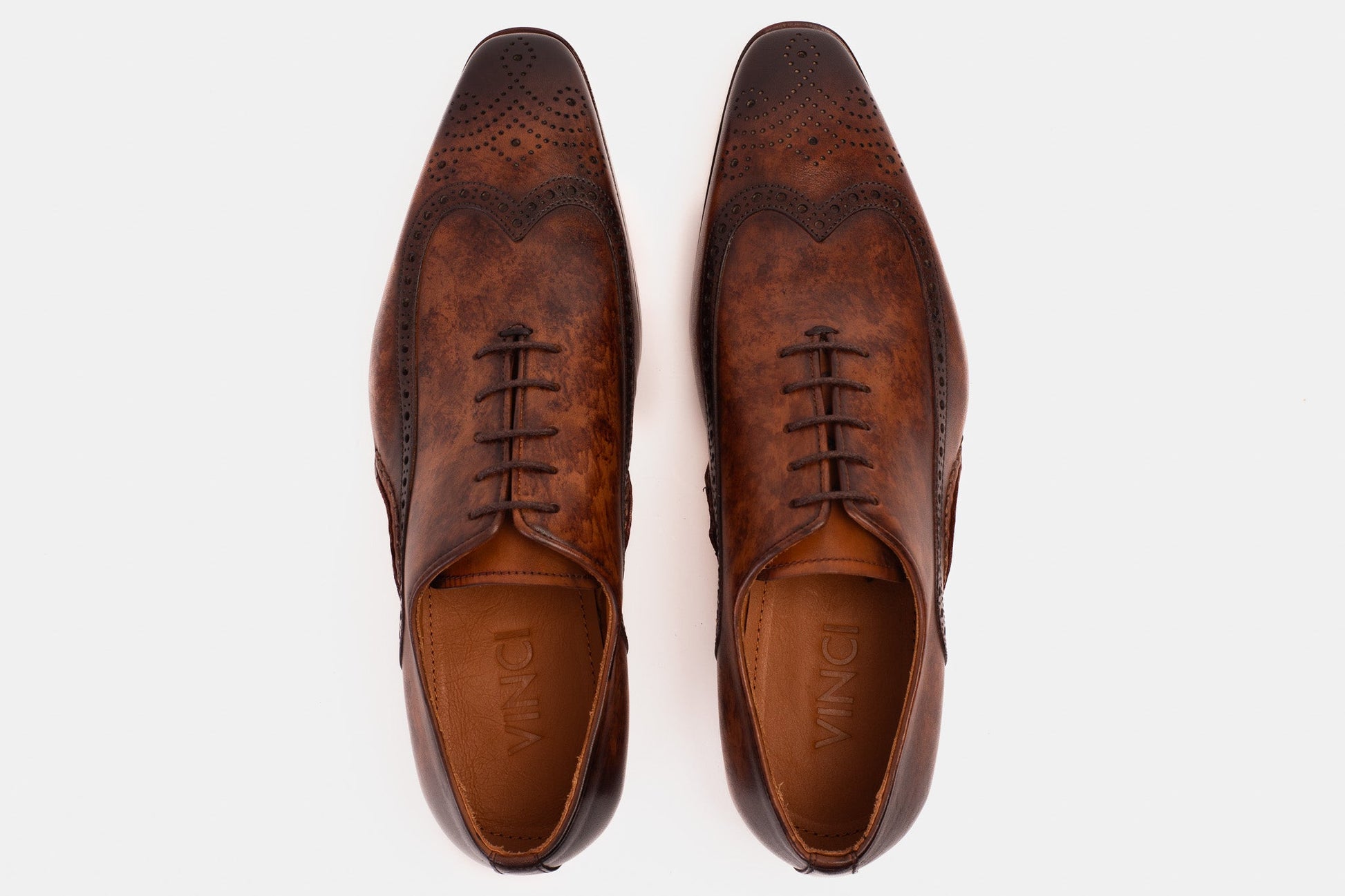 Artistic Hand-Painted Finish: The brown leather is adorned with a hand-painted finish, adding a touch of individuality and refinement to each pair.