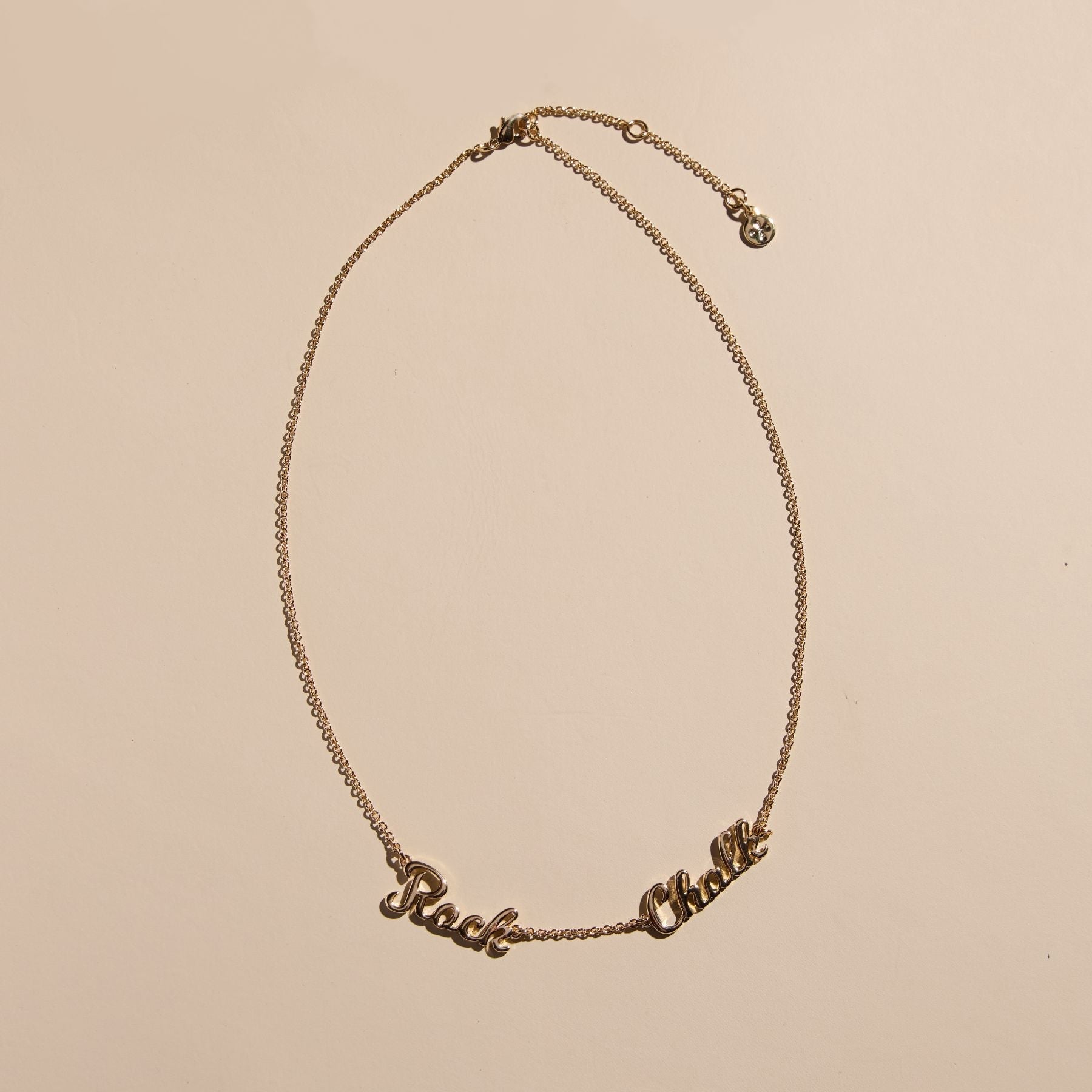 Get game day ready with our University of Kansas "Rock Chalk" Initial Necklace. This necklace features a 14k gold plated chain with the initials 'Rock Chalk' to show your University of Kansas pride!