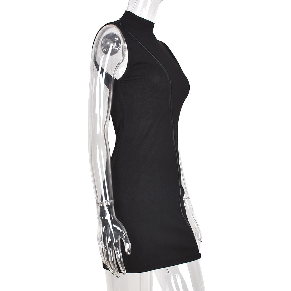 Women Clothing Autumn Round Neck Sleeveless Zipper Dress Sexy Hollow Out Cutout Out Backless One Step Dress