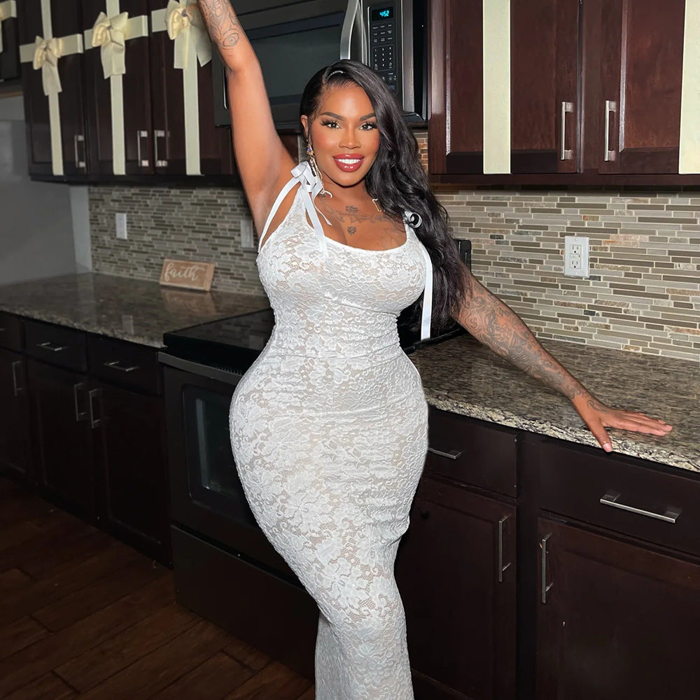 Women Clothing Spring Summer Lace Bow Sexy Backless Lace Double Layer Length Dress